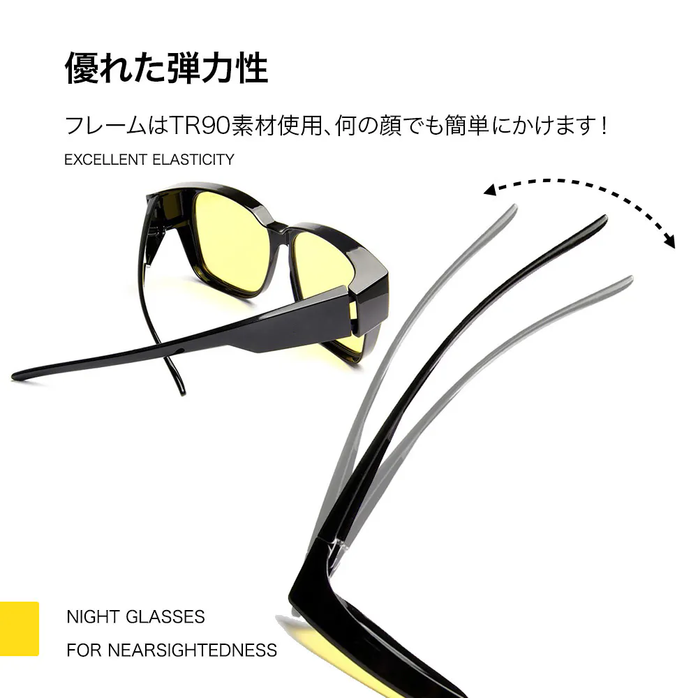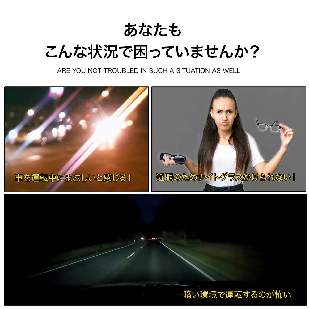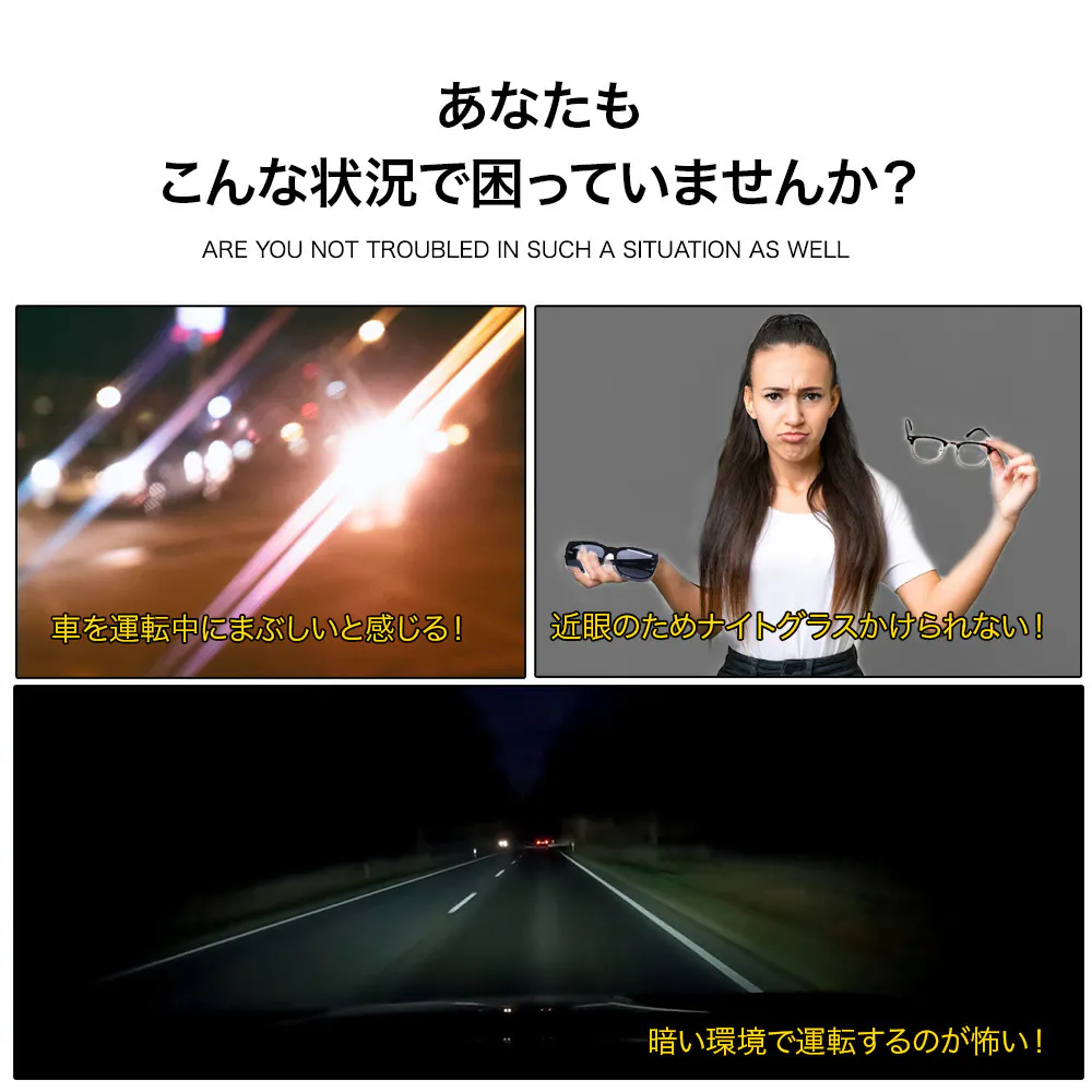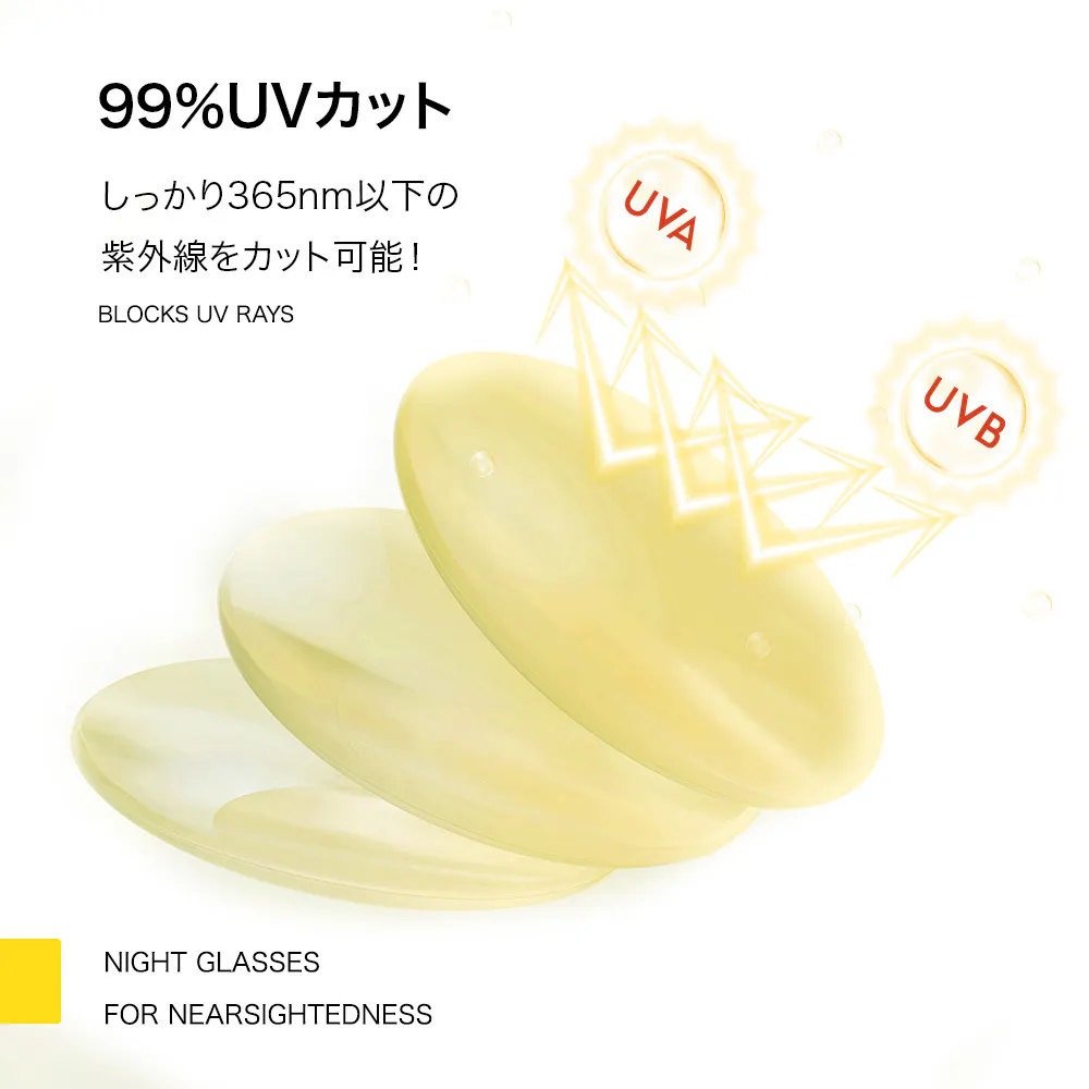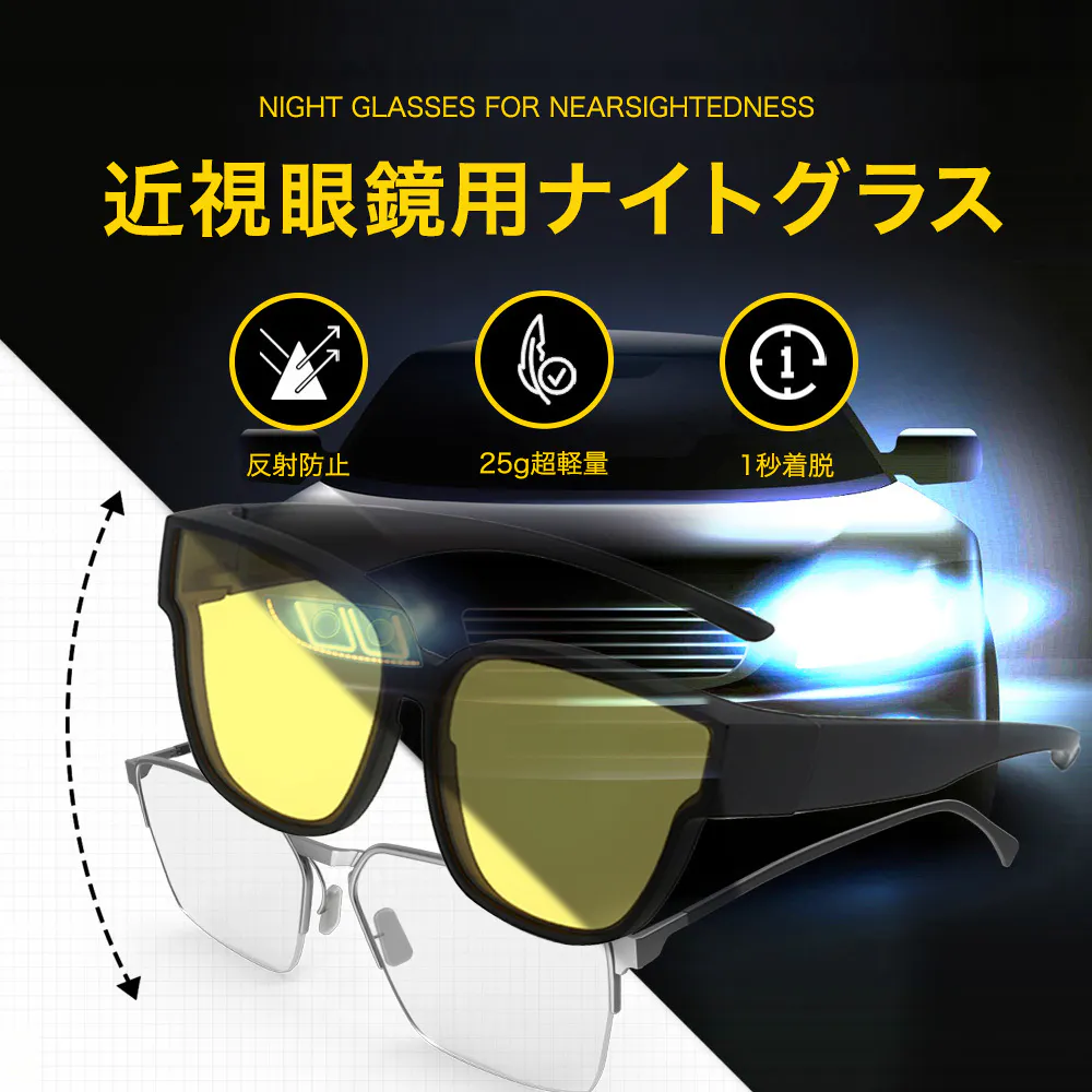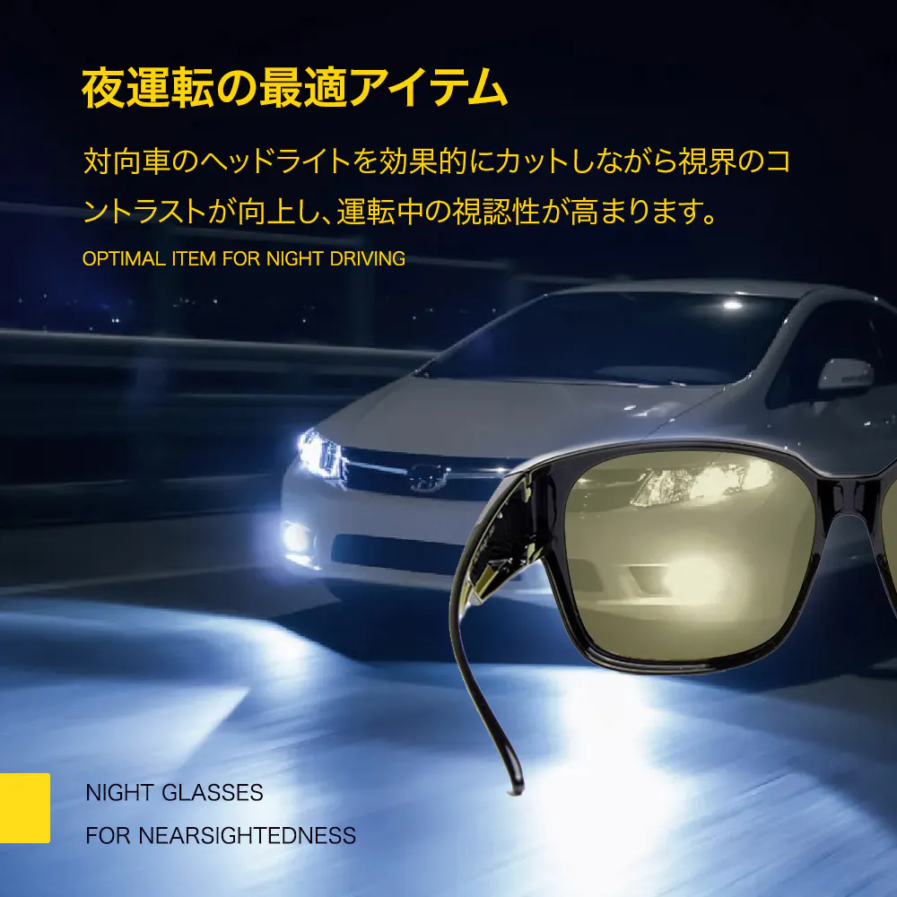 JIS規格に適合したナイトグラスで、対向車のヘッドライトなどの眩しさを和らげし、夜間や低照度の環境でも視界を向上させます。