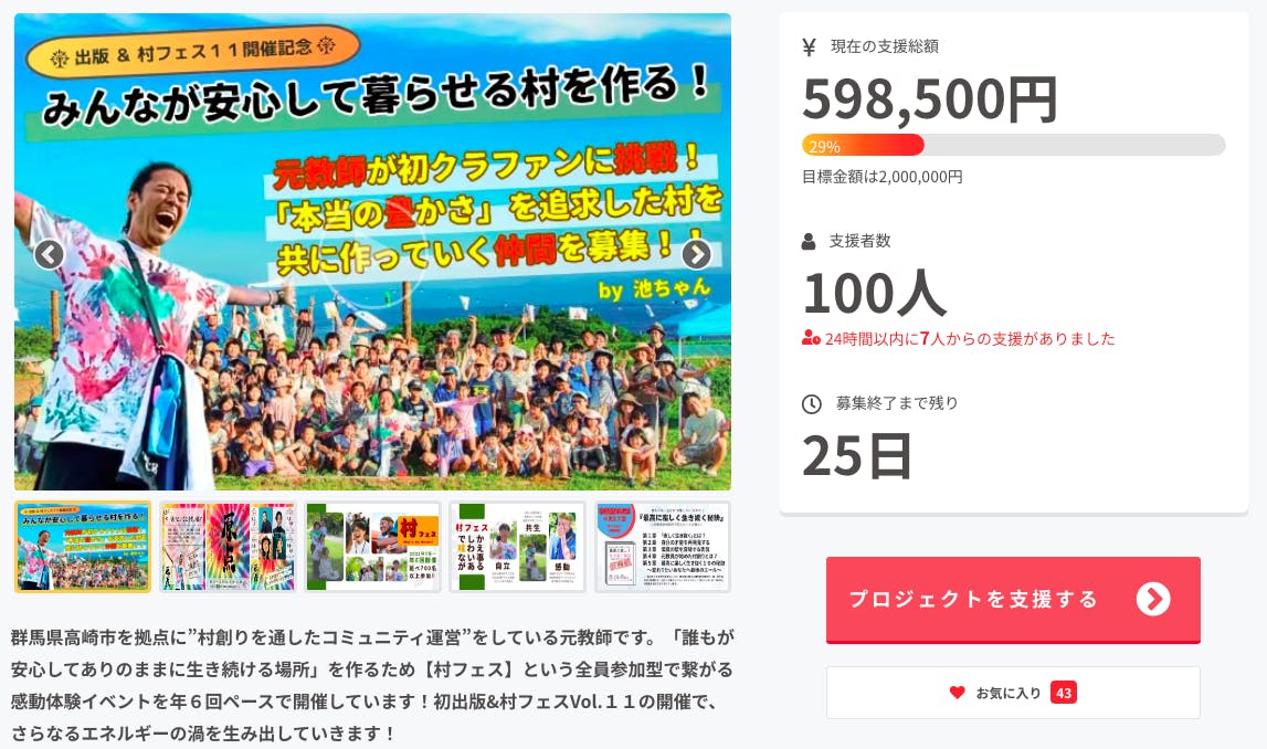 今後の村フェス、村創りをさらに渦高く活性化させていくためのご支援と仲間集めが目的です。どうか、この後もご支援いただければと思います。