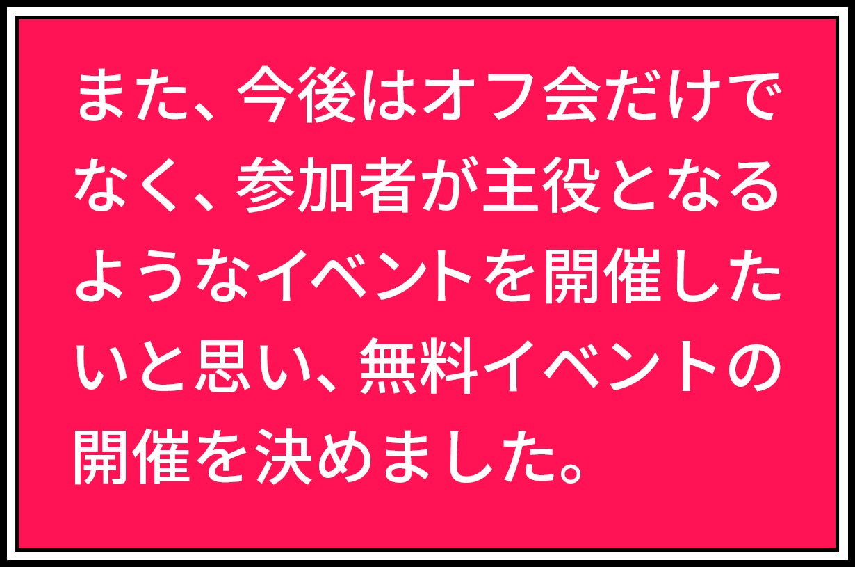 今回のイベントを皮切りに、徐々に無料イベントの規模を拡大させながら定期開催していきたいと考えています。