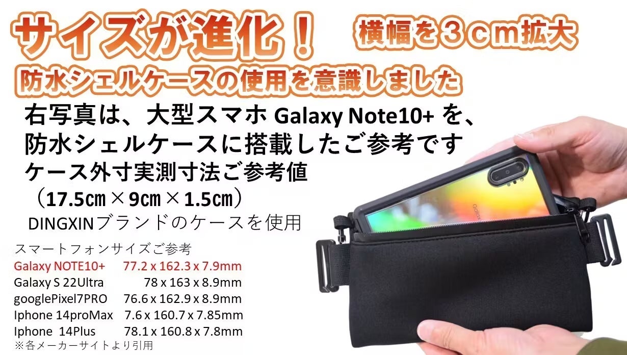 「大型スマホ+ケース」 での使用を想定したサイズ。