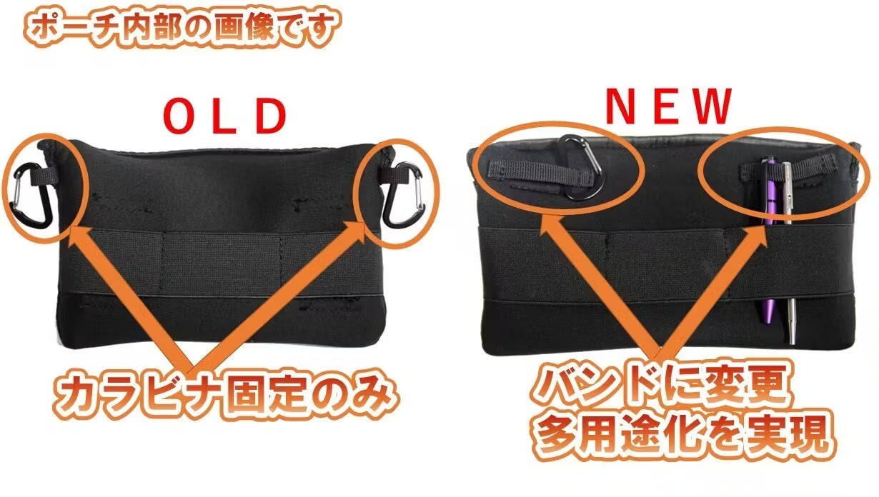 カラビナ固定にしか使えなかったバンドを、ペン等の固定にも使える仕様に変更。