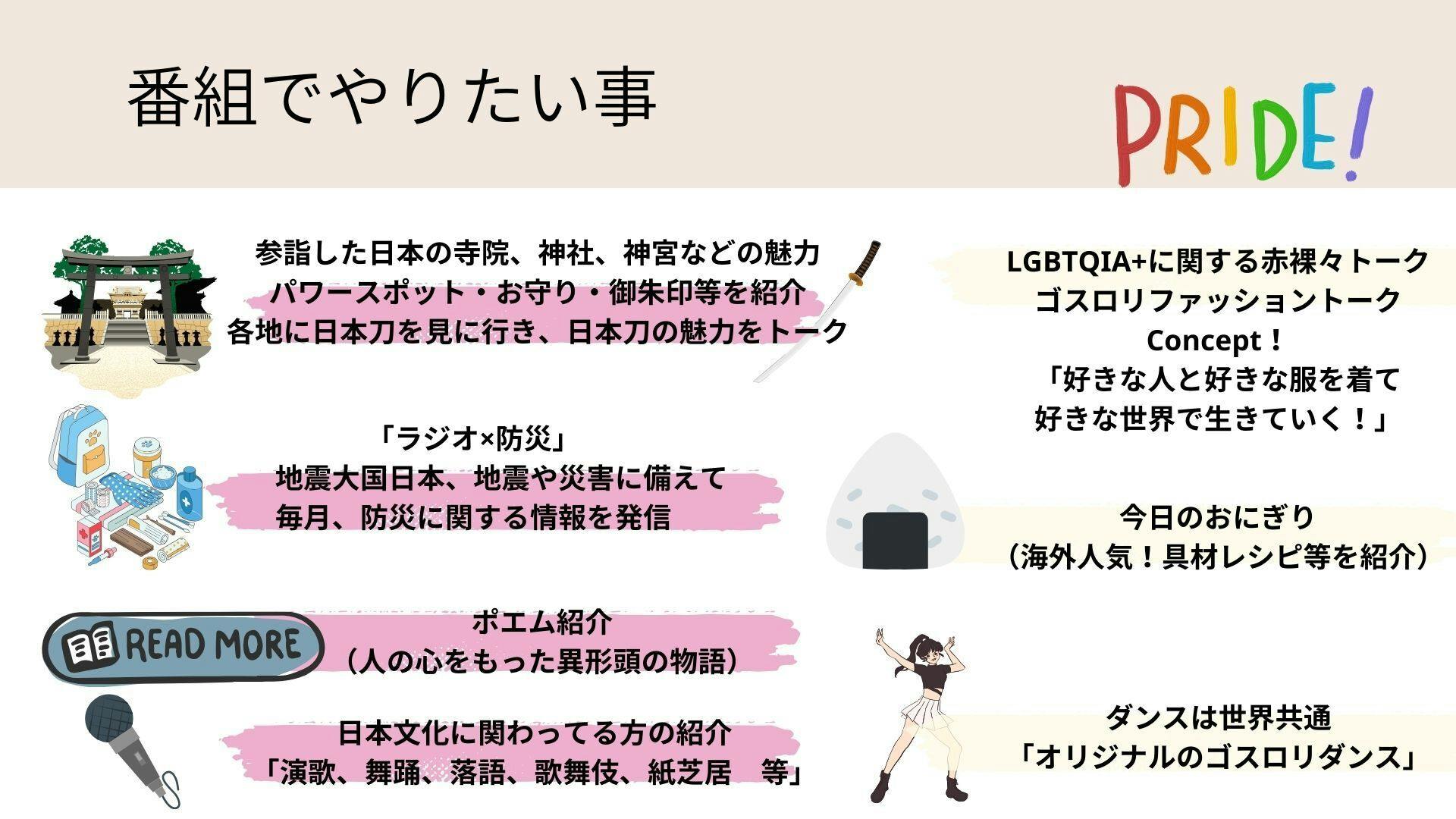 日本文化や日本にしかない魅力を、新世界のラジオという形で「声」で届けていきたい。国内外からアクセスしていただき日本の文化を知ってもらう場所にしたい。