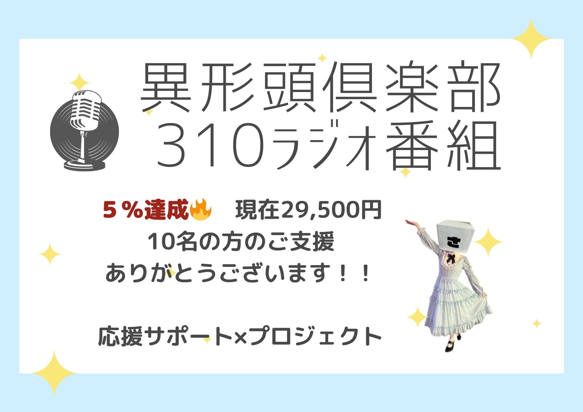 異形頭が喋るラジオ番組をこの度、企画し4月28日から番組がスタート致します。そこではじめてのクラウドファンディングをさせていただきました。