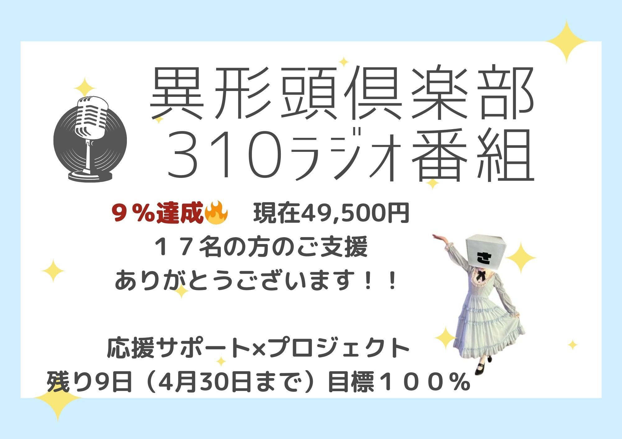 応援サポート×プロジェクトは残り9日となります。