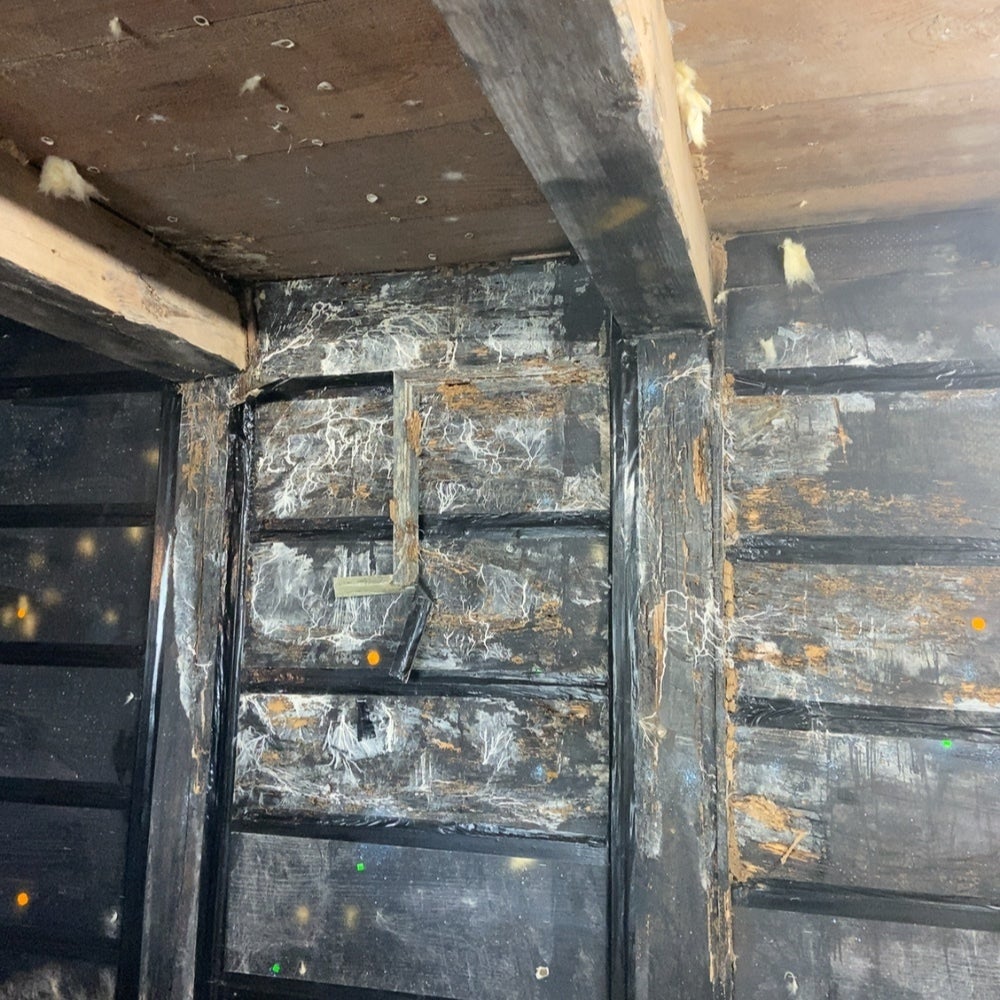一部、壁が腐っているような箇所を発見。この裏の土壁は台風の時にひびが広がって落ちたのです…