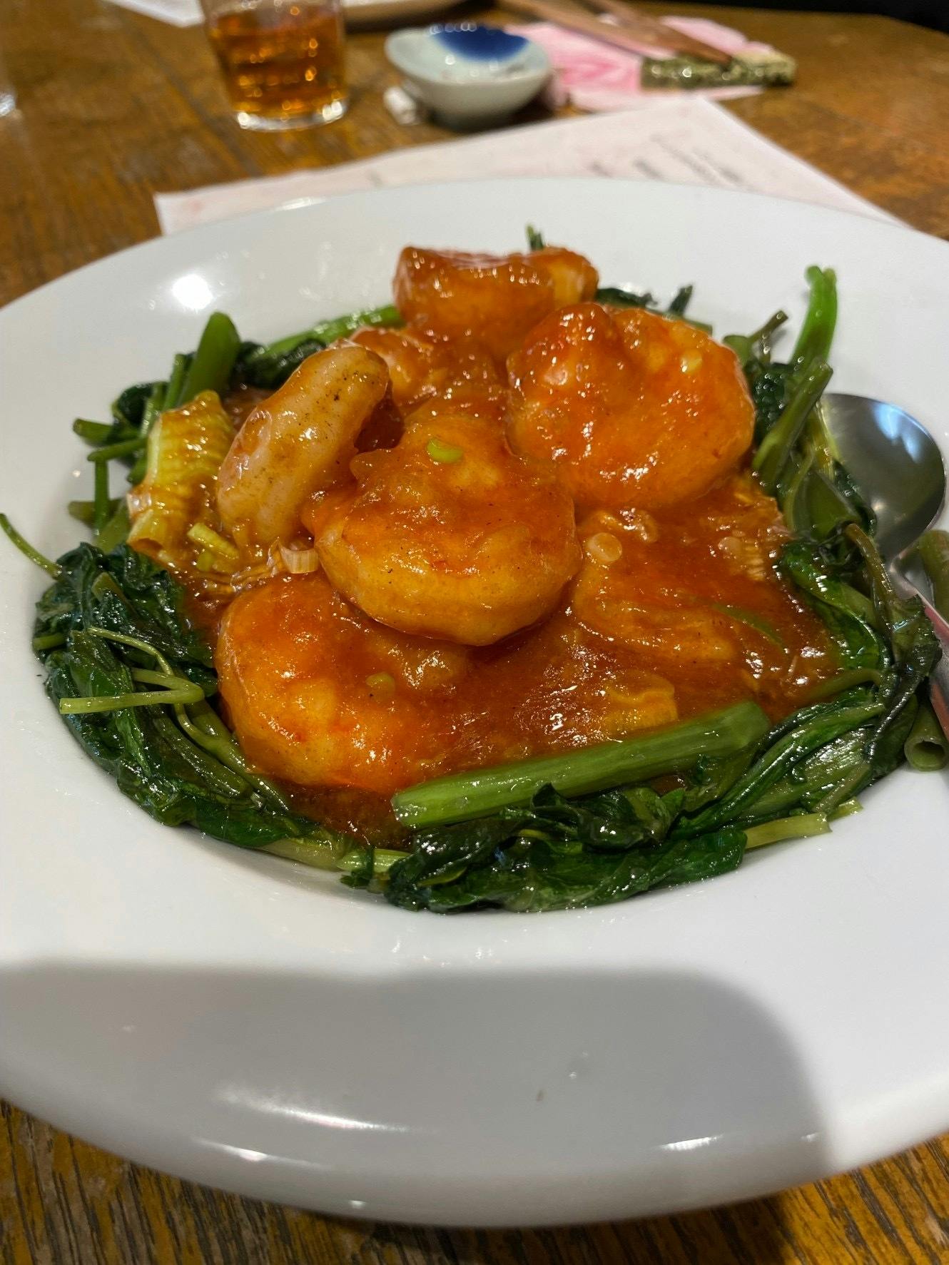 主菜 勇ポークの酢豚、天使のエビのチリソース