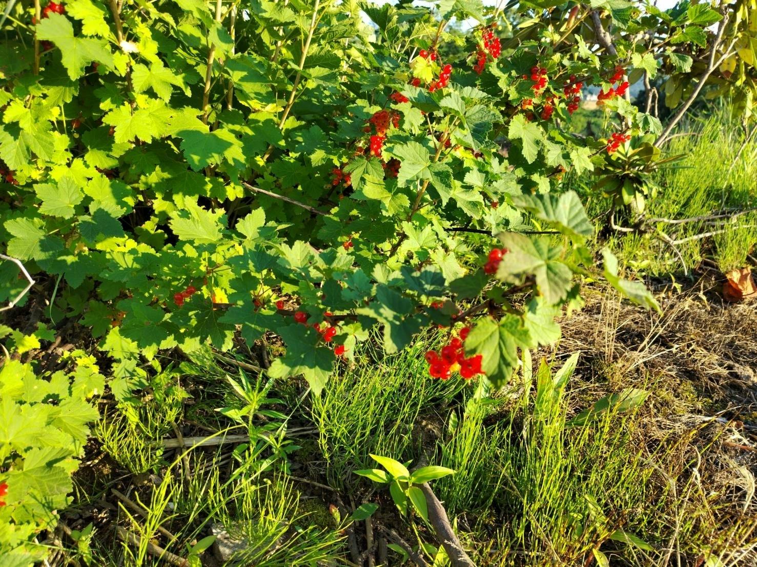 農園周辺でとれる初夏の果実。スグリ(上)とビックリグミ(下)。甘酸っぱい果実は野生の鳥たちの大好物。
