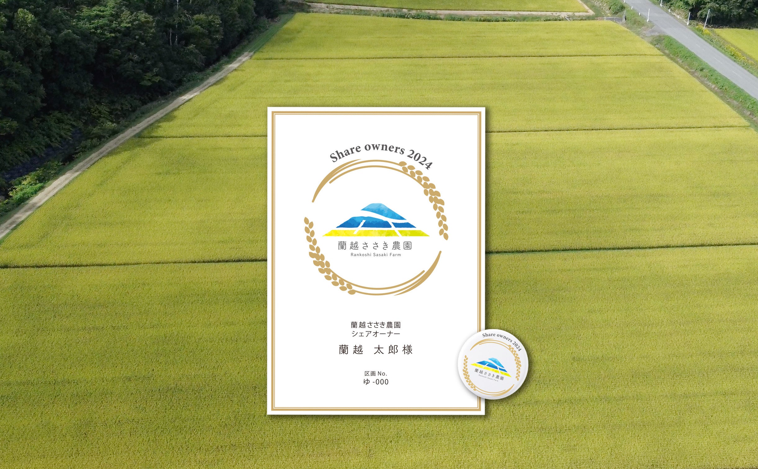 シェアオーナーになっていただいた方には、契約後1ヶ月以内にオリジナルの「蘭越ささき農園シェアオーナーズ権利証」、「オリジナルバッジ」をお送りさせていただきます。作業体験、見学の際には、バッジをつけてぜひお越しください♩