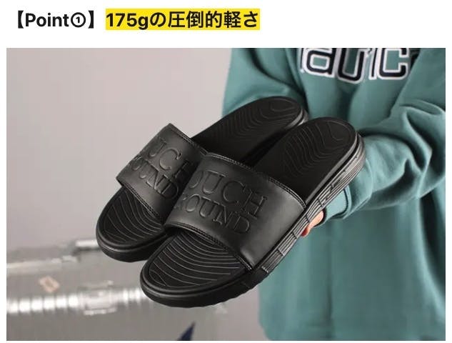 高弾性のEVAとゴムを最適な比率で配合し、175gの圧倒的軽さで足に負担をかけずに着用できます。