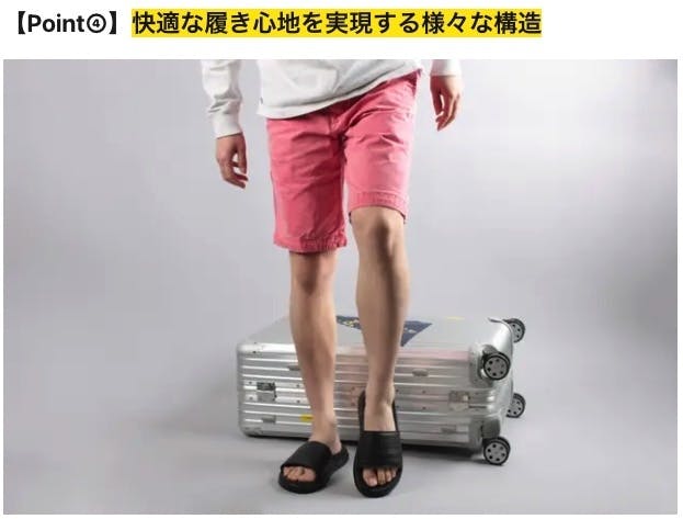 足裏から足元まで快適さを追求したメガコンフォートスライド。