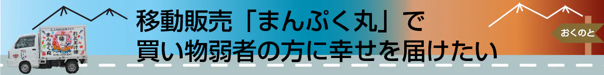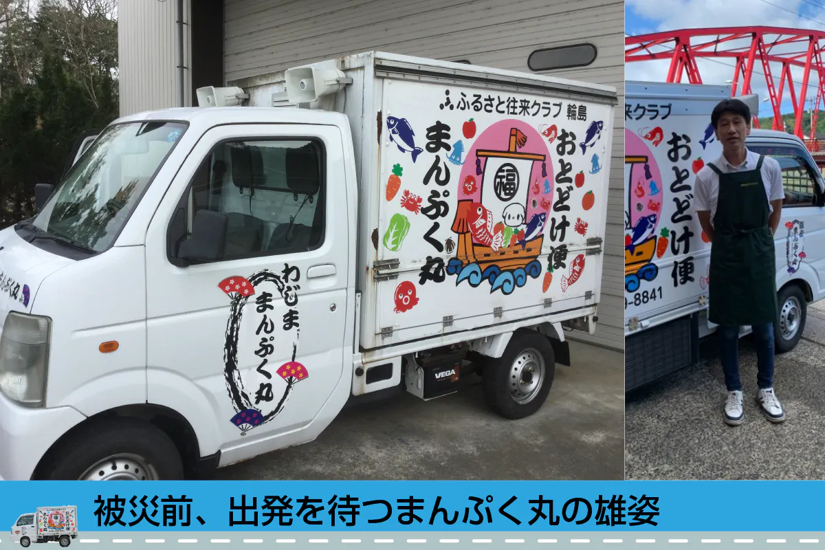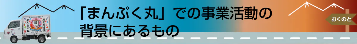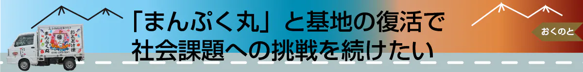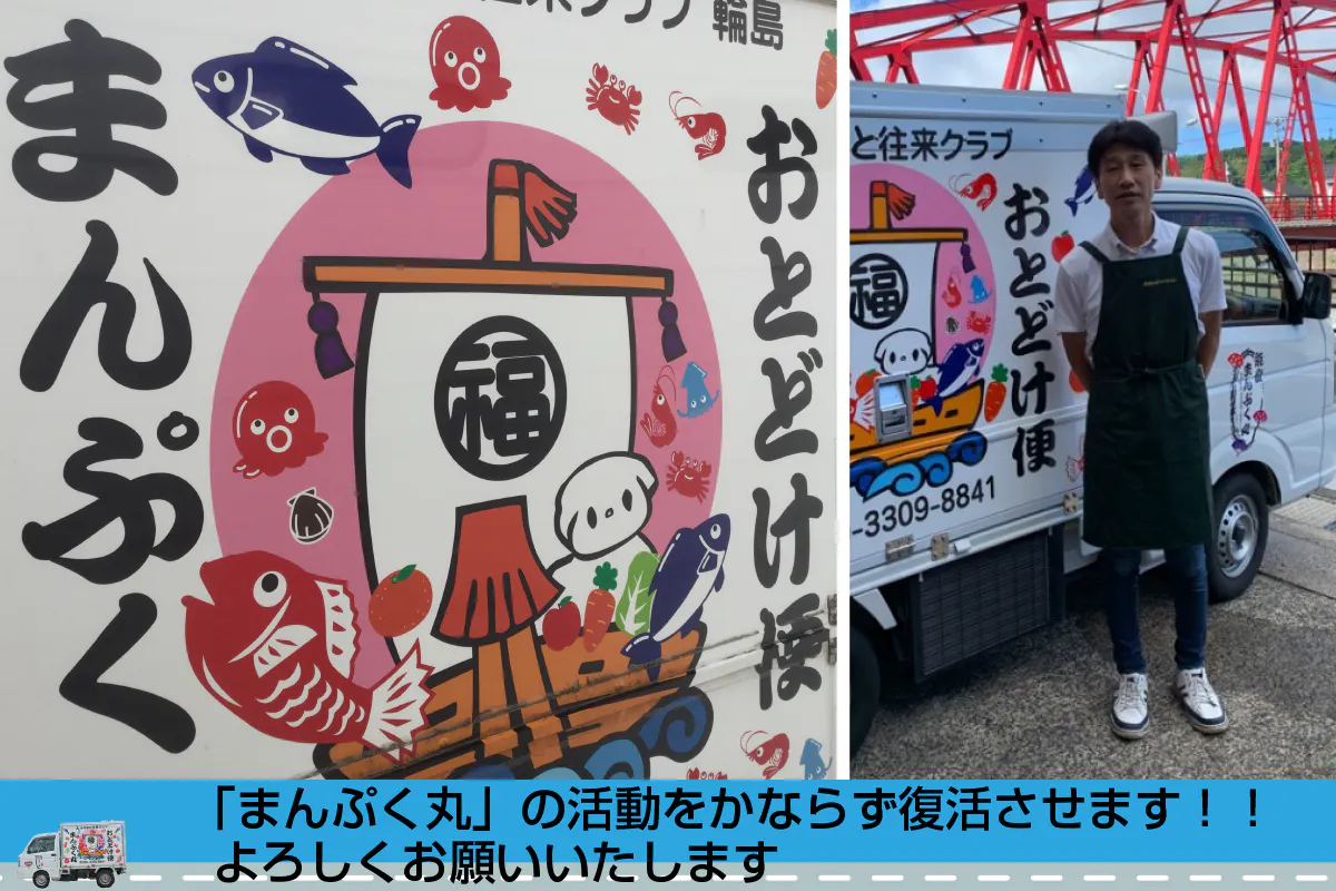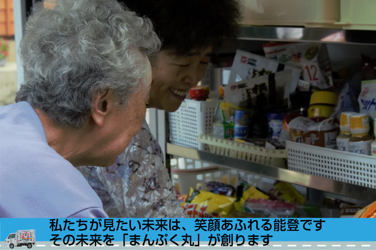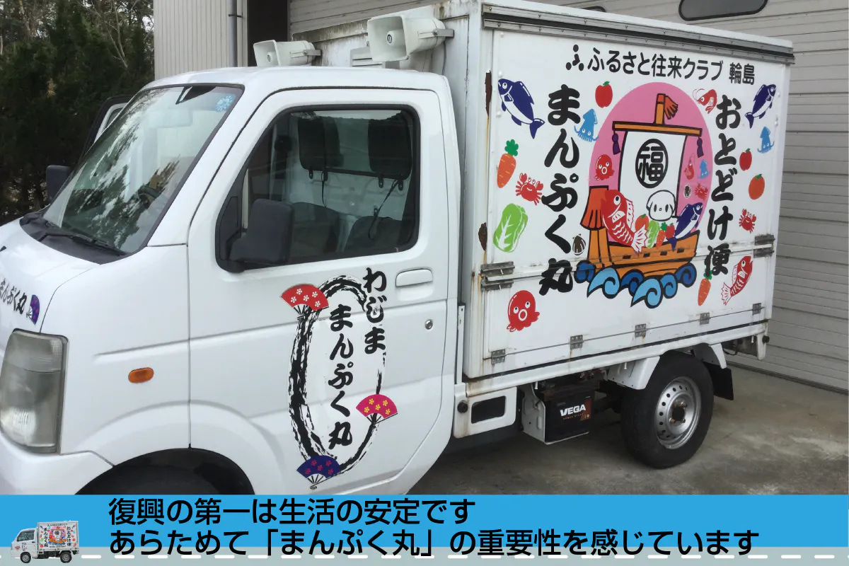 私たち「まんぷく丸」の活動は、能登輪島の中山間地域の人々に商品と笑顔を届ける、意義ある仕事だと確信しています。この仕事の継続には、皆さんのお力添えが必要です。ぜひとも私たちを助けていただきたい、そう切に願っています。