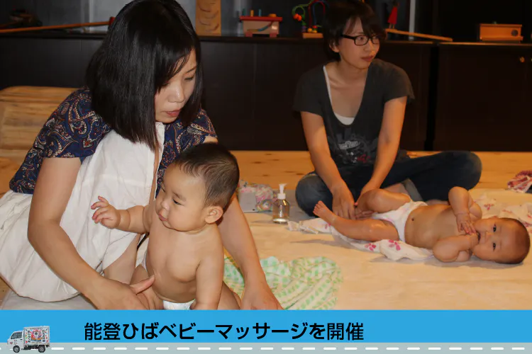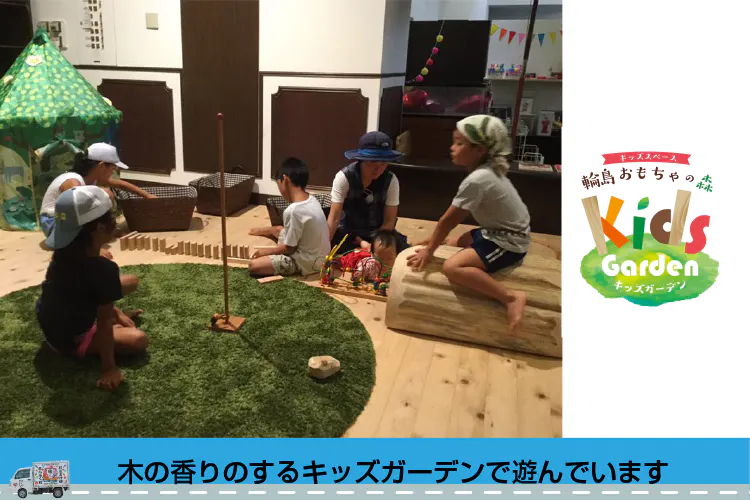 ② 能登ひばで床をはり、オール能登ひばの積み木や遊具、北欧の知育玩具で子どもたちを楽しませるキッズガーデンを制作し無料開放してきました。