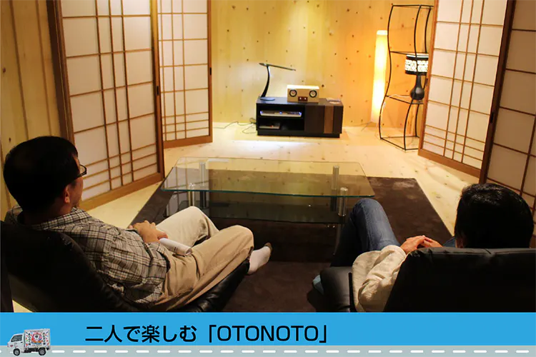 ① オール能登ひばでできたアクティブスピーカーと能登ひばルームをセットにしたオーディオリビングルーム「OTONOTO」(オトノト)を開発、施工しました。