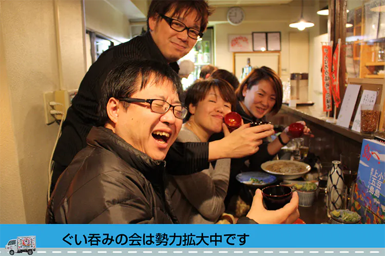 ② 輪島の老舗塗師屋、田谷漆器店の協力を得てそば酒房福島から輪島にむけぐい吞みを注文し、東京輪島ぐい吞みクラブを立ち上げ、これまでに170余名が参加してくれました。