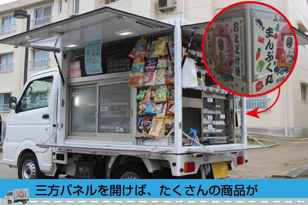 買い物弱者・困難者をサポートし地域を見守る移動販売「まんぷく丸」はプロジェクト内の説明のとおり。