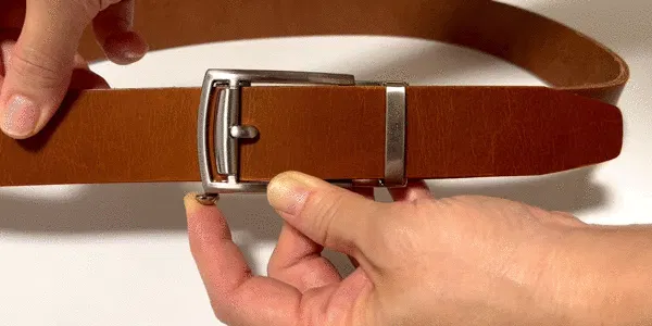 通常のベルトの使用方法を思い返してみてください。ベルトをバックルに通し、バックルについているピンを穴に挿してからベルトをループに通す・・・ですよね?