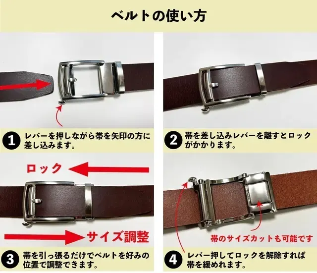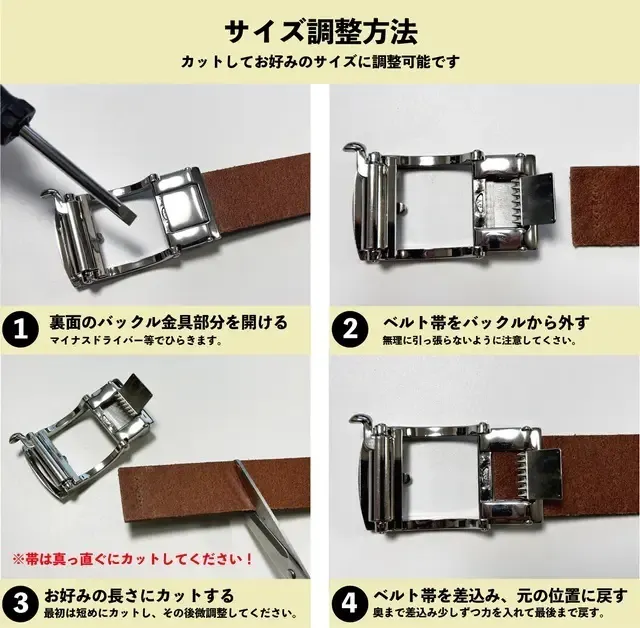 ベルトが長い場合はサイズカットが可能です。