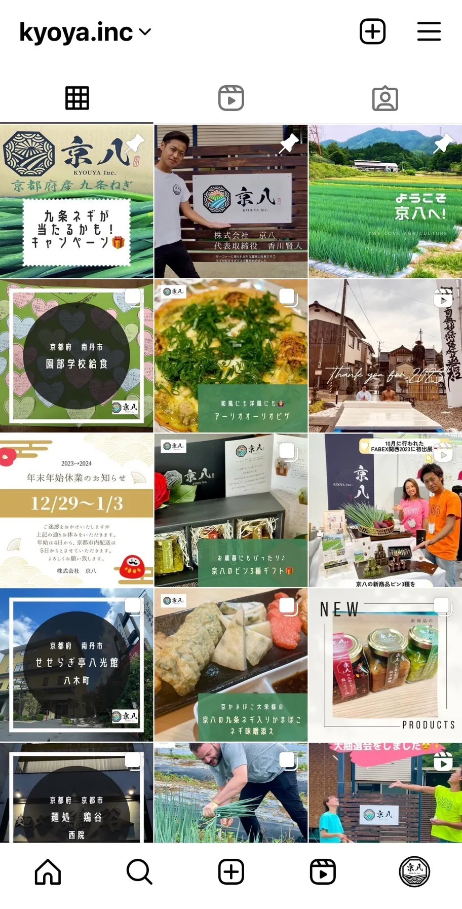 SNSで弊社の新商品の情報や、販売している店舗様のご紹介などをいち早く発信することで、より多くの方に知っていただき、京八の九条ネギ商品をお届け出来たらと思っております。