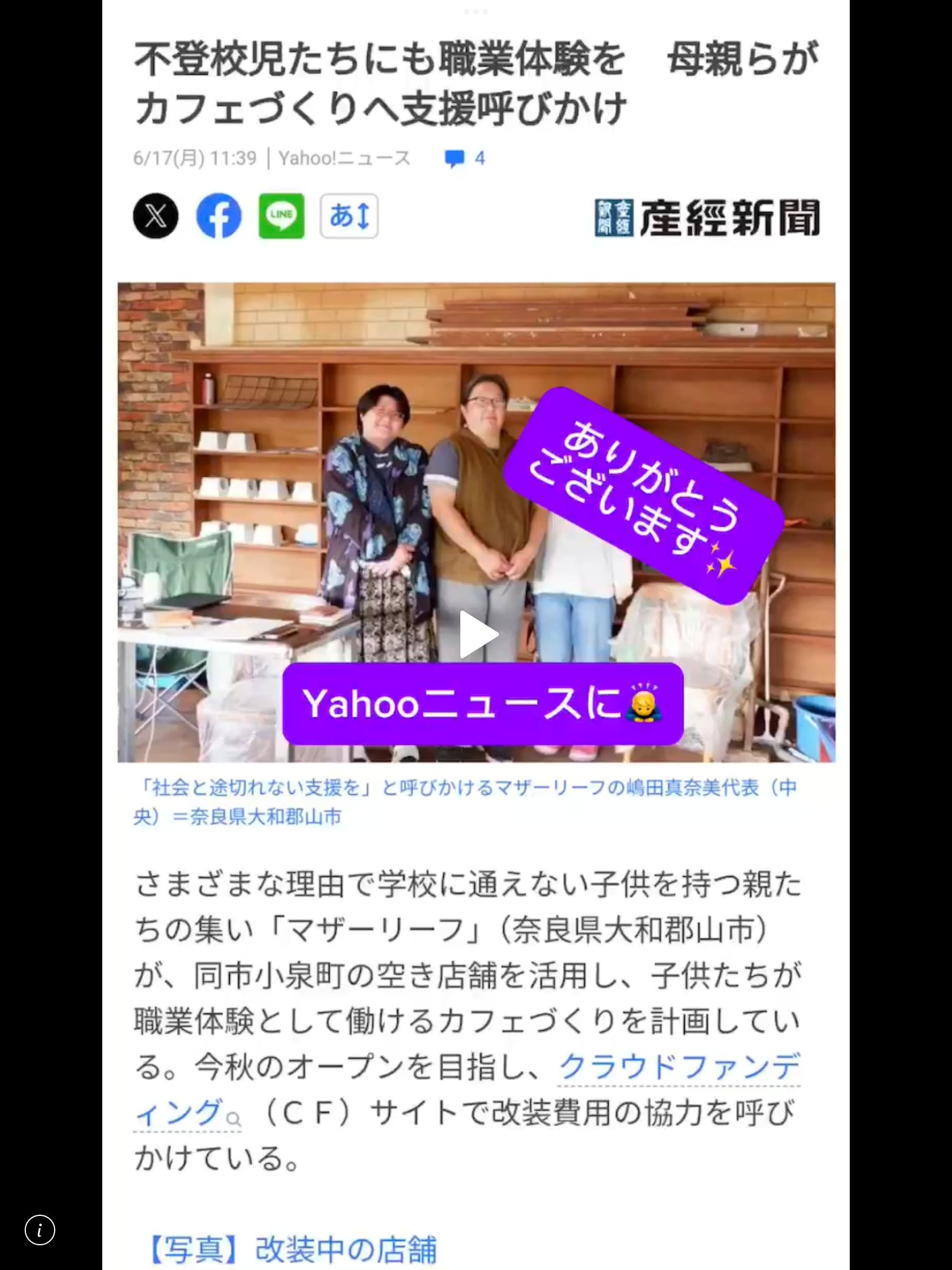 2024年6月16日産経新聞、Yahooニュースに掲載いただきました。取材いただきありがとうございます。今も、獣臭が残る床を剥ぎ明日、職人ボランティアさんが来てくださる前にした準備中です。私たちの想いを見て、聞いて、考え。沢山の応援、本当に感謝です。今日も頑張ります‼︎