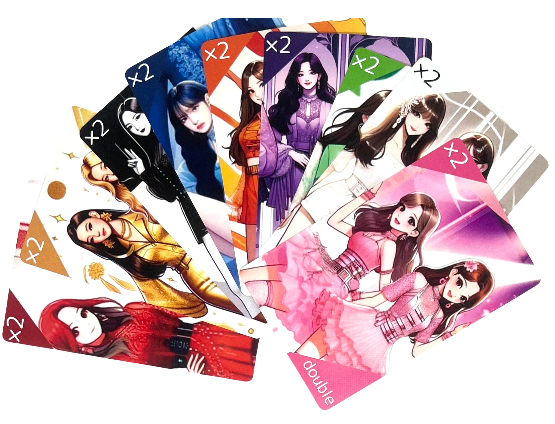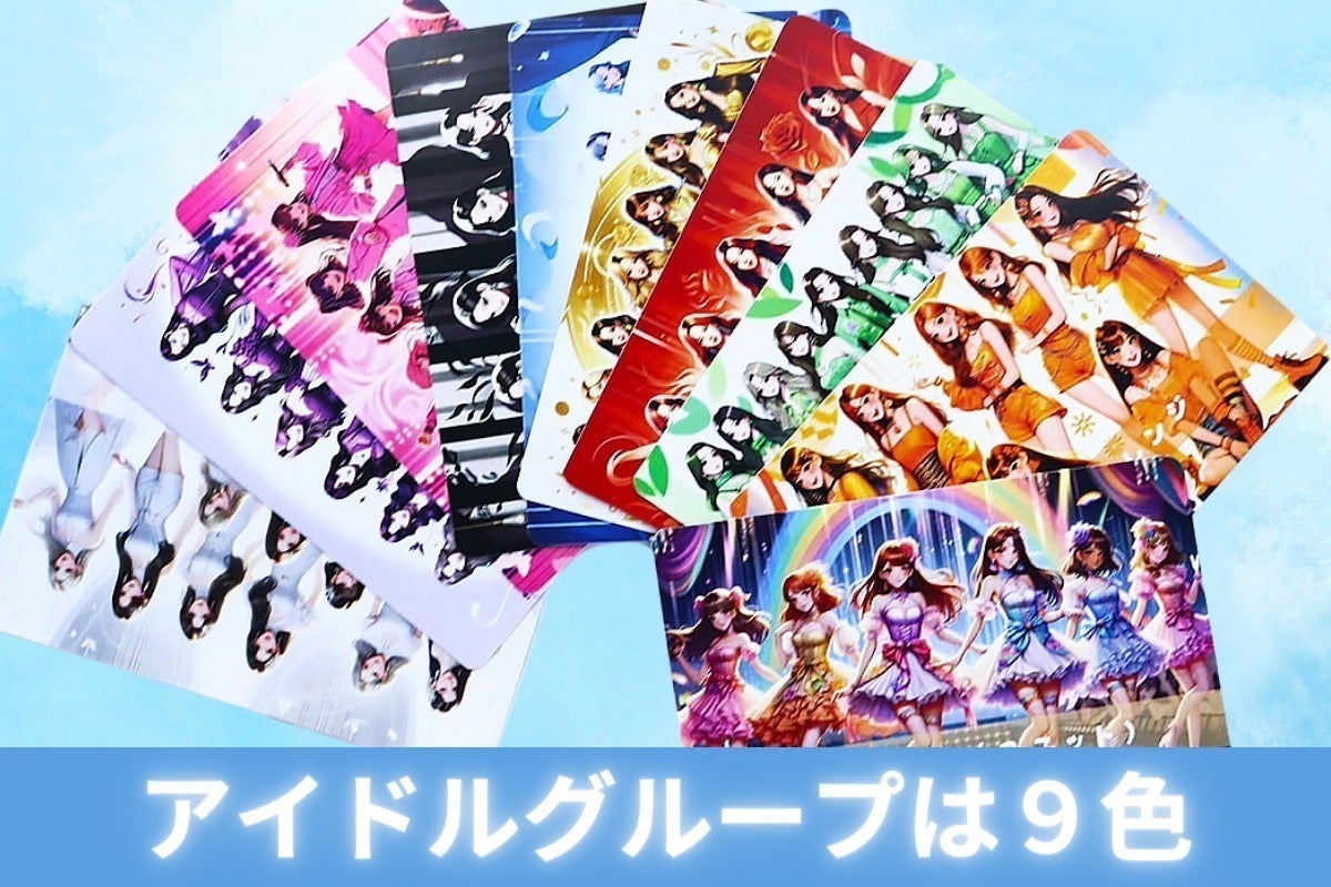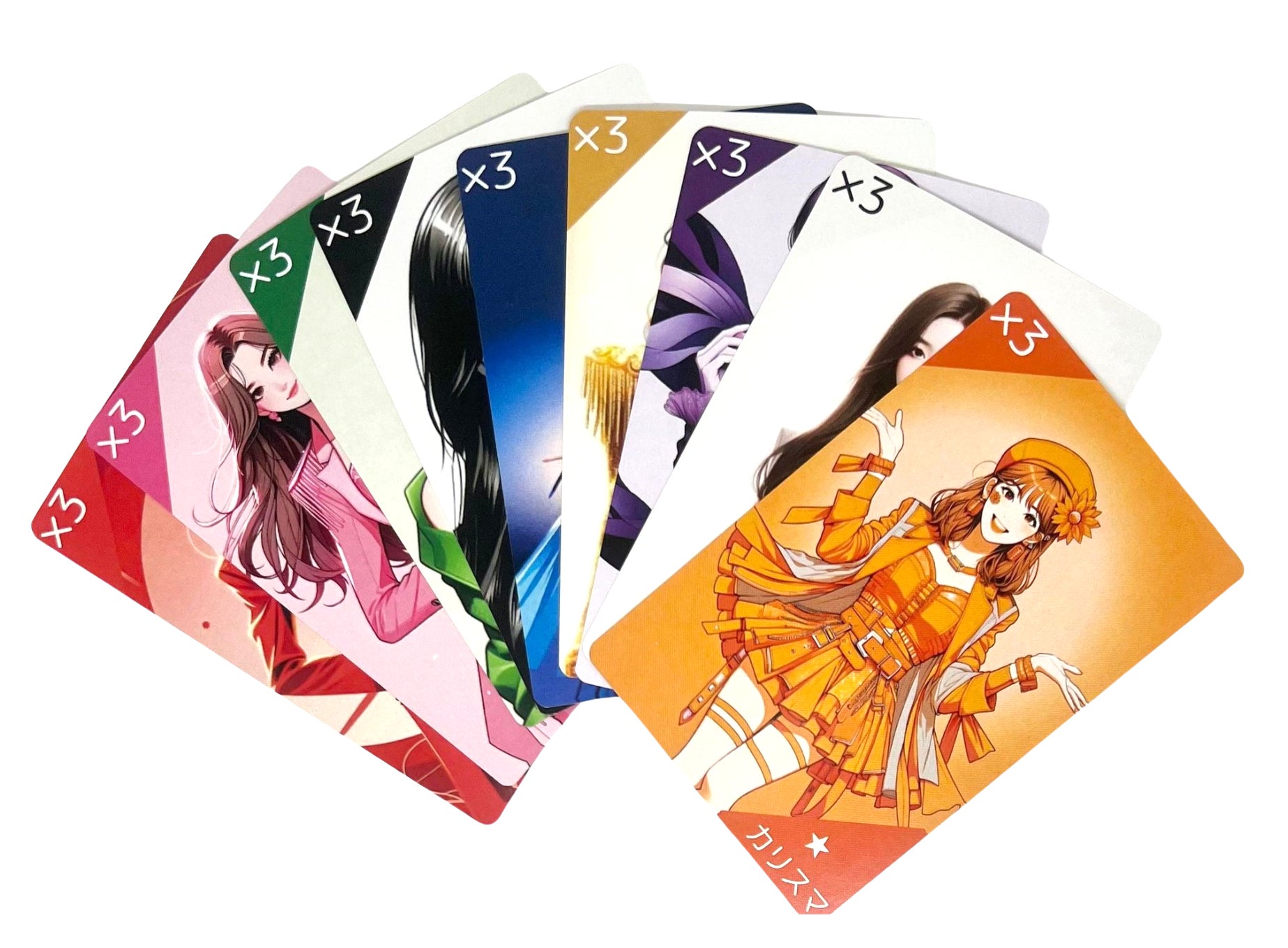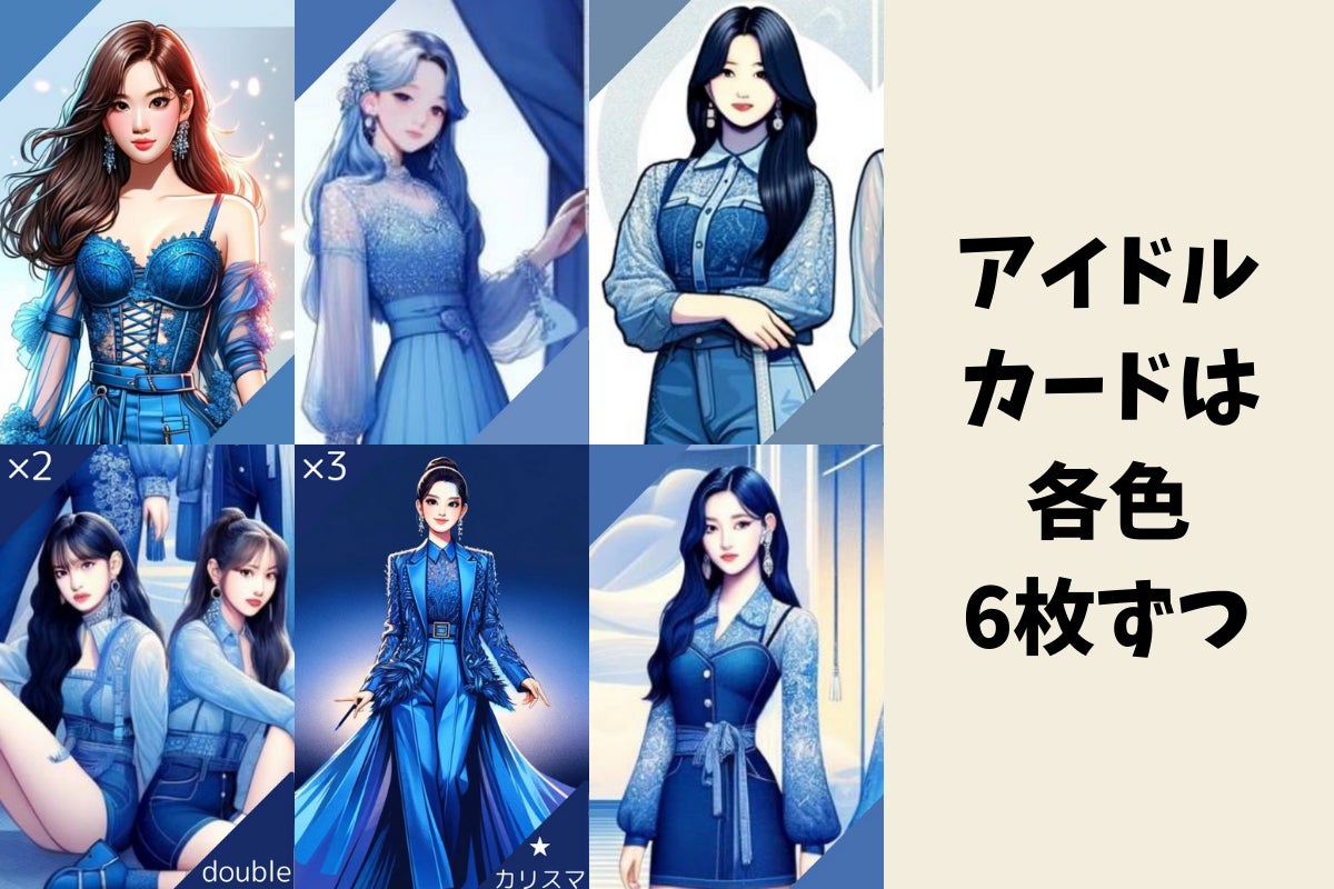 各プレーヤーは、色が合うアイドルカードを5人分集めて色別アイドルグループ1組を完成していきます。