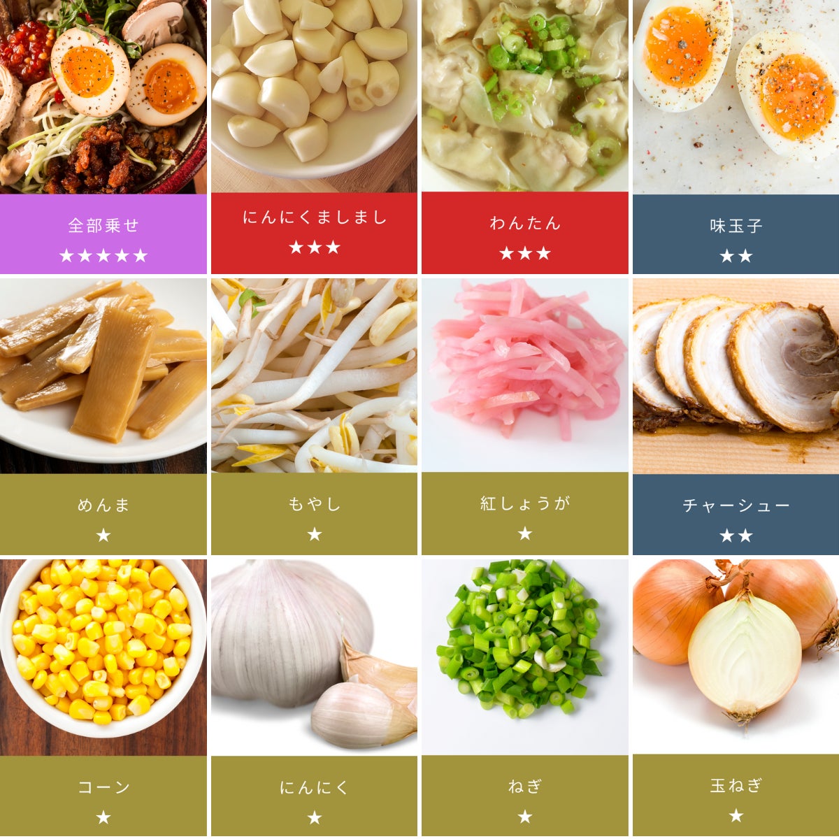 麺の面積や量が多いほど★が多い ★の選定はあくまでも個人的な見解です