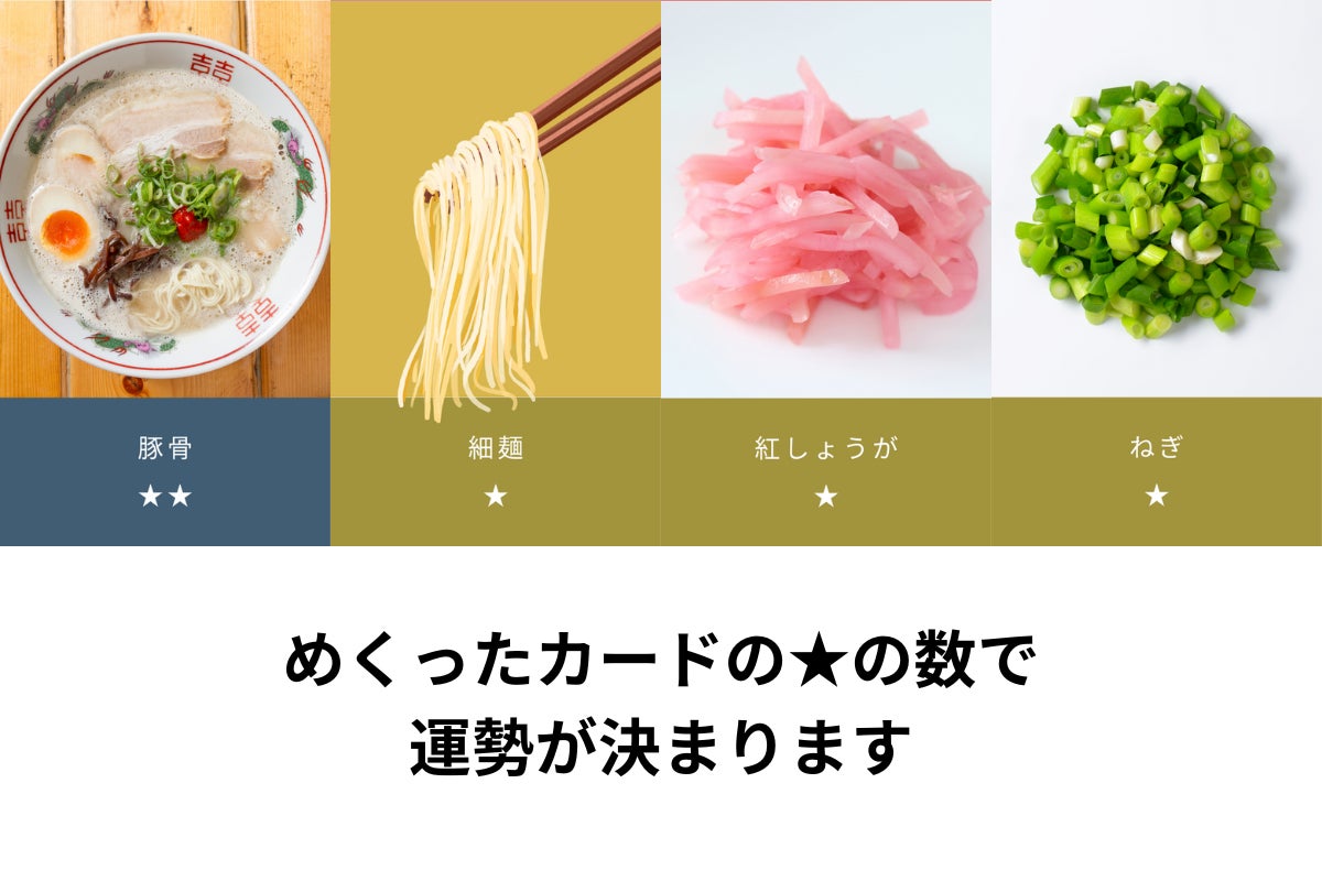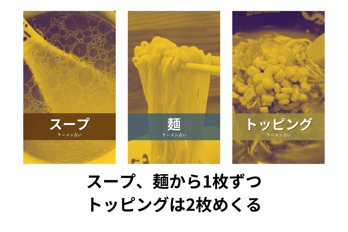 スープ、麺、トッピングカードをそれぞれ選んで本日の運勢を占う