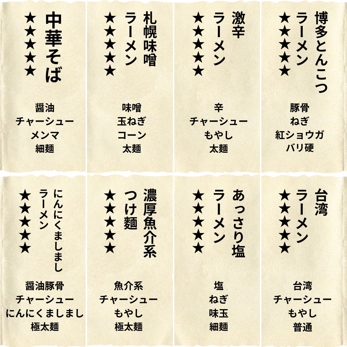 ・ラーメン占い一覧表