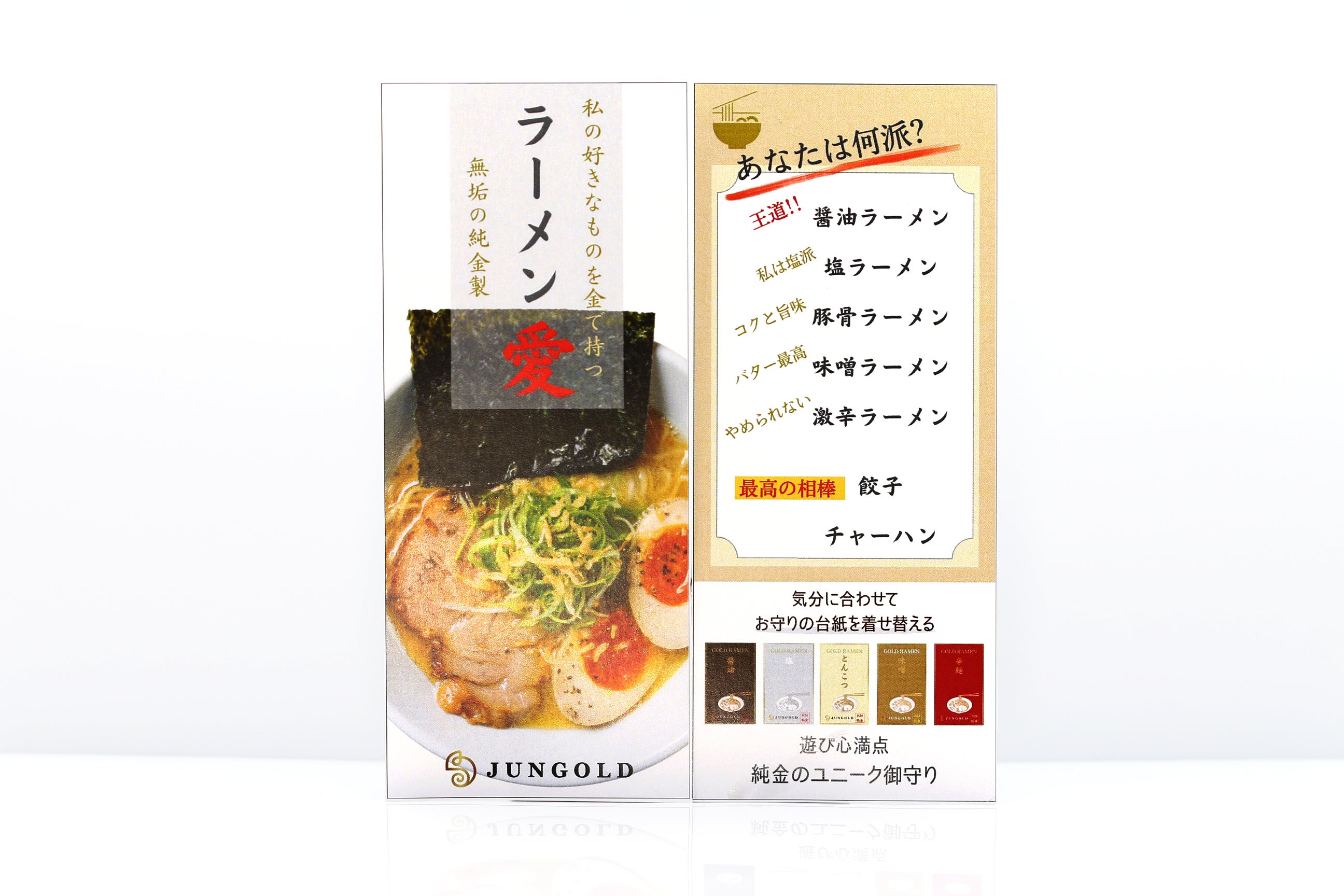 お守りの台紙は5種類のラーメンからお選びください ※今回は餃子とチャーハンはありません