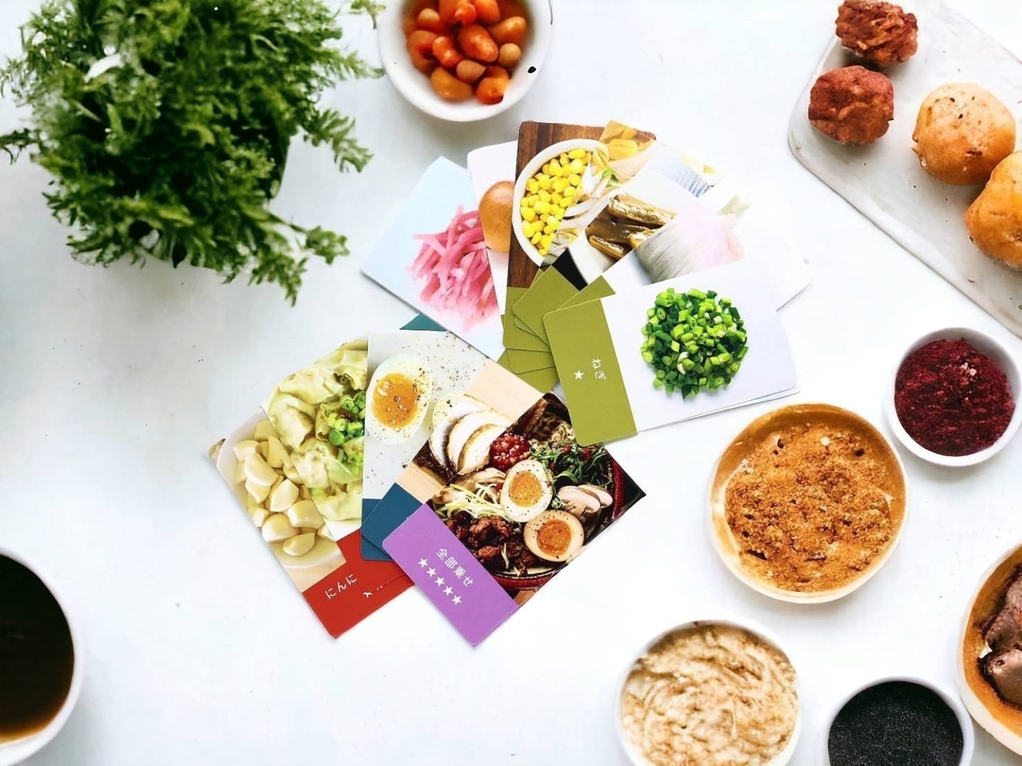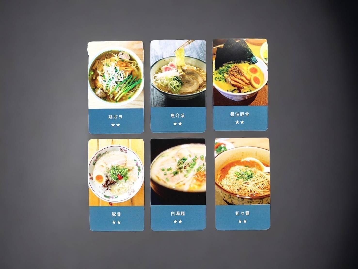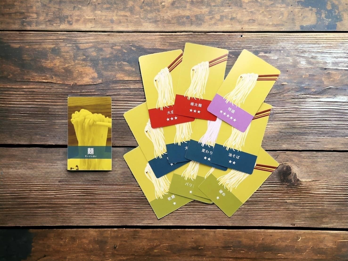 1. スープ、麺、トッピングラーメンにまつわるカードをめくる