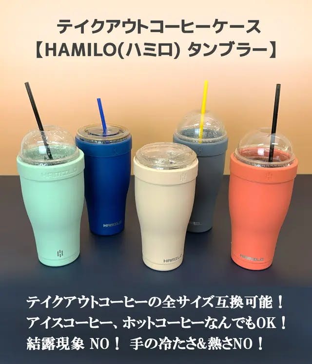 HAMILOタンブラーは普通のタンブラー ?? いいえ、違います! ハミロタンブラーは、手を汚したくない方のための、 テイクアウトコーヒーの不便さを解決した、【テイクアウトコーヒー専用ケース】です。