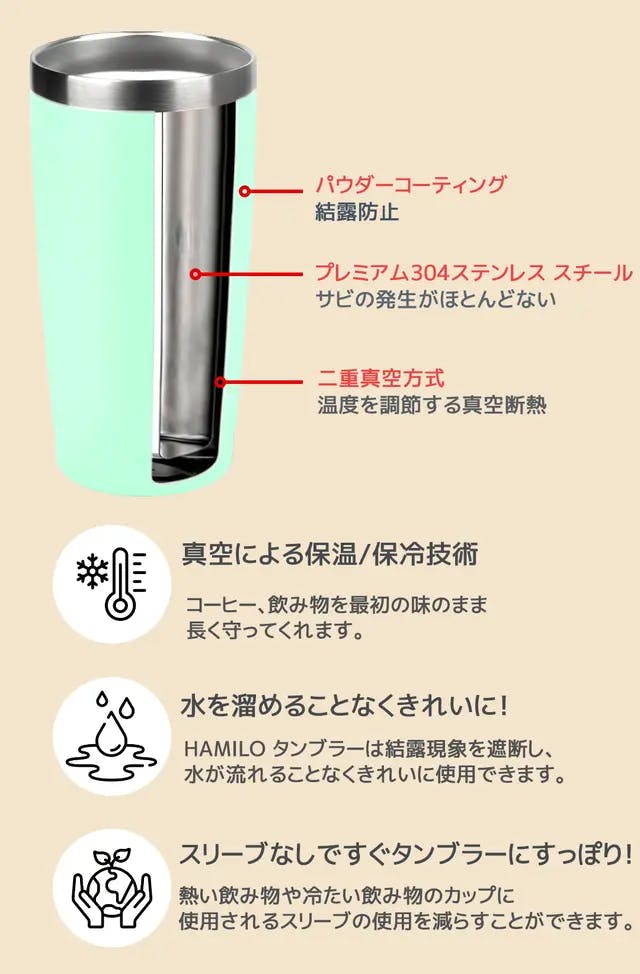 結露による水気、不快な瞬間をHAMILO タンブラーが解決します。