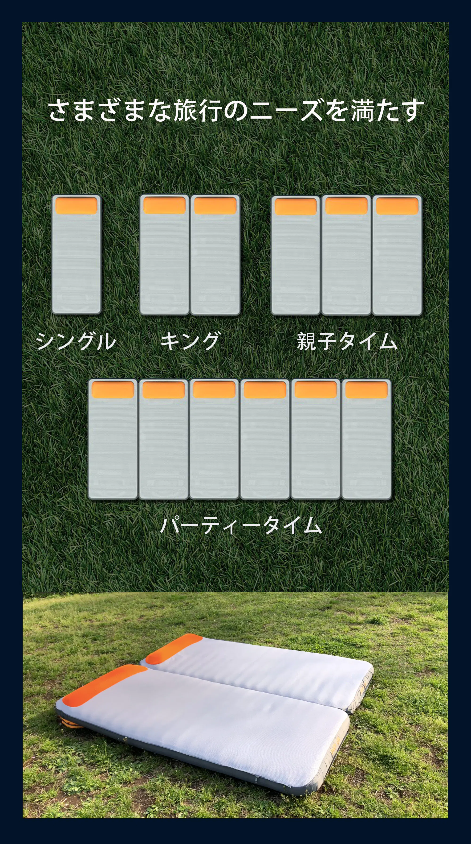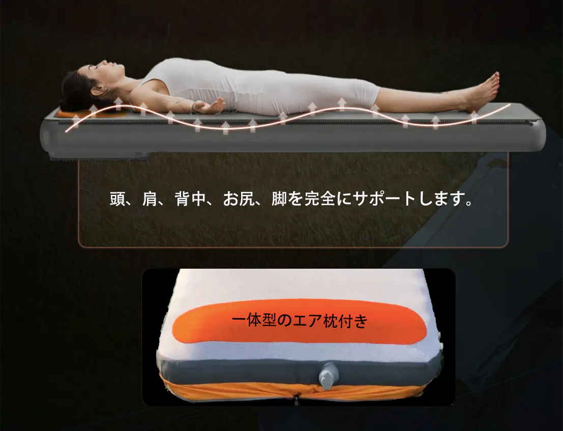 (2)このマットレスには、20秒からマットレスを迅速に形成し、40秒でMAX状態になり、充気時間に応じて硬さを調節できます。調整可能な柔らかさと硬さを一気に充気することで実現できます。さらに、マットレス一体のエア枕が付いています。