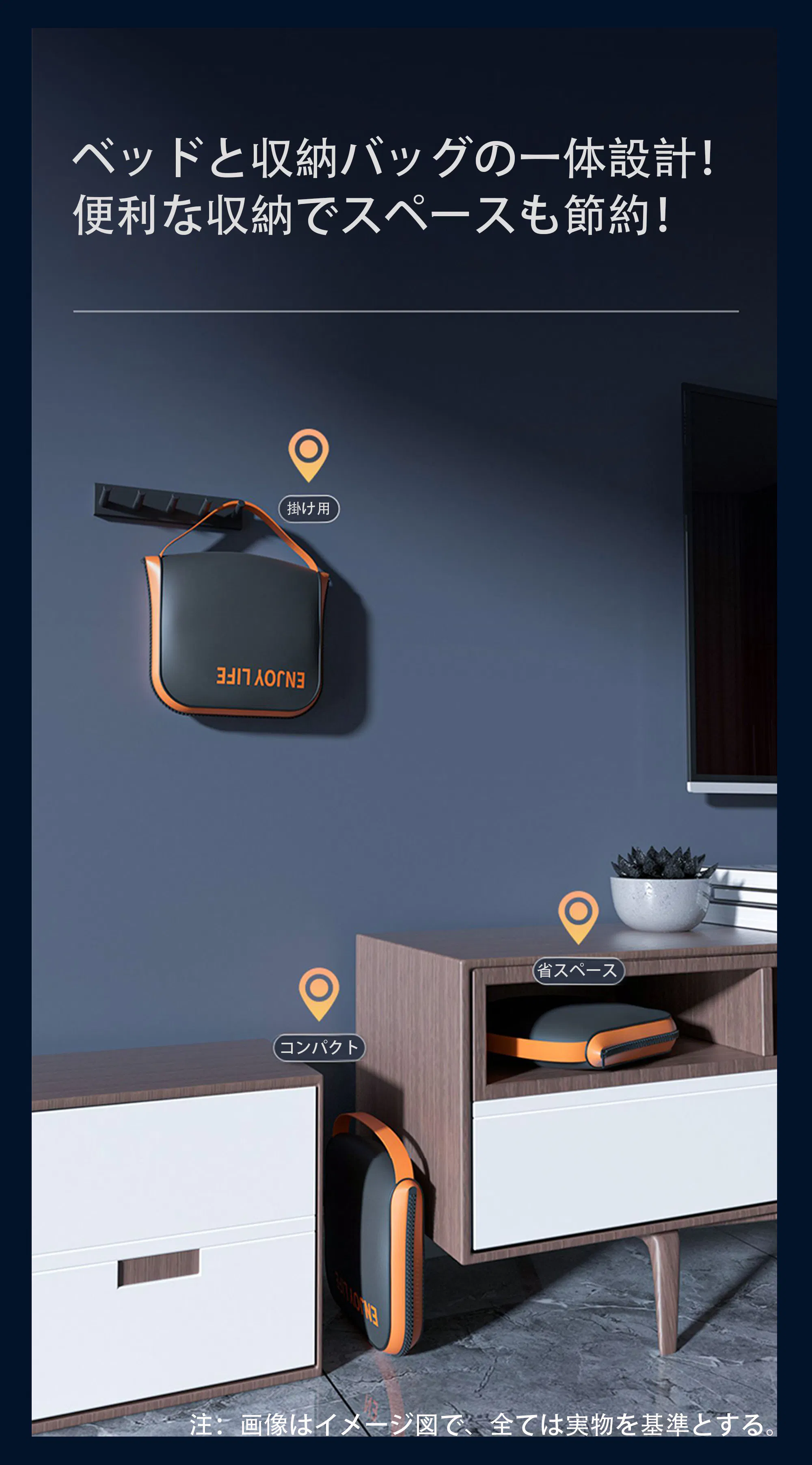 一体型デザインでスペース節約:ベッドと収納が一体化し、持ち運びも簡単です。また、非常に軽量で、総重量は1.9kgです。折りたたんで収納袋として持ち運びが簡単で、子供でも簡単に持ち運べます。