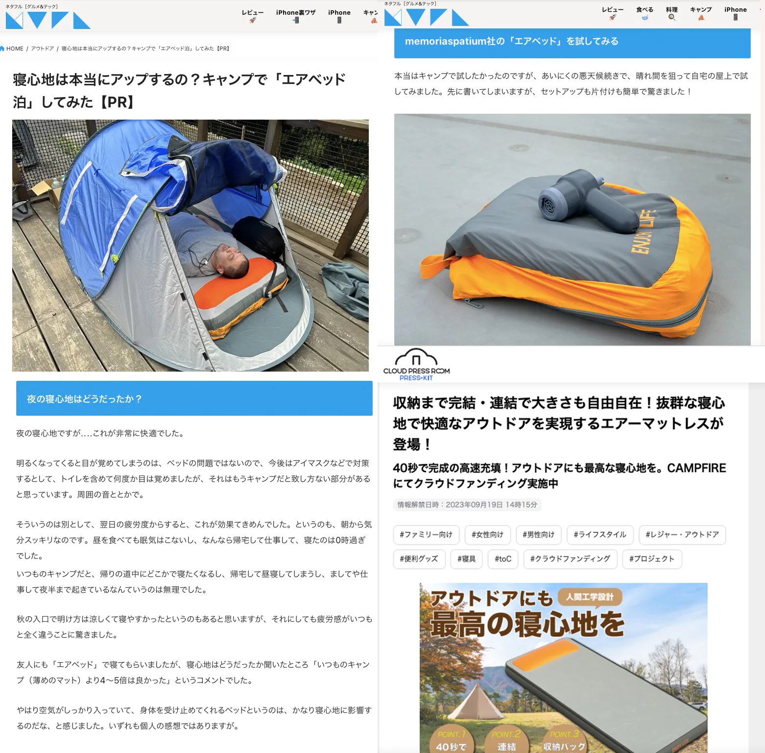 日本のトップアルファブロガー、ネタフルのコグレさんがエアベッドについての記事をネタフルで公開しました。また、CLOUD PRESS ROOMなども記事が公開されています。