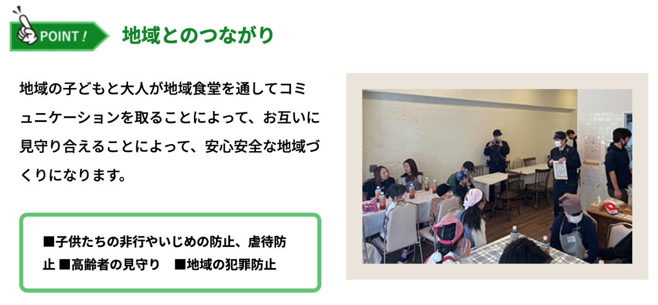 1人でも多くの人に1食でも多く食事を提供出来ることにより、地域社会とのつながりが広がり様々な社会問題の解決に繋がります。