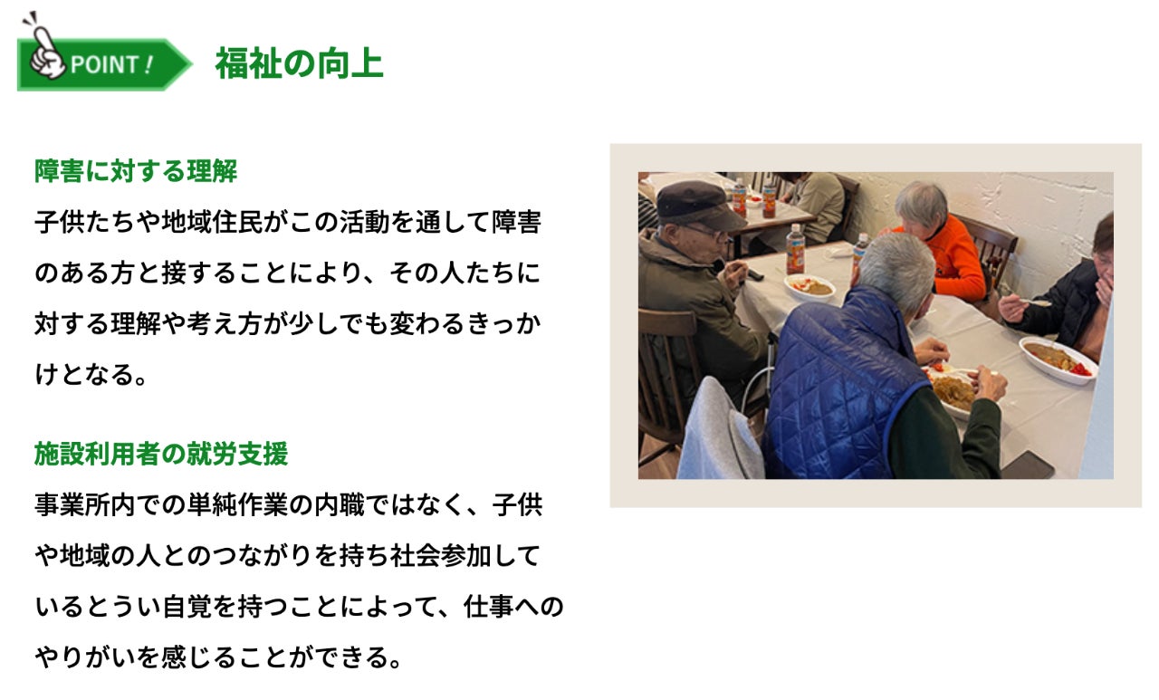 この取り組みでは宿題カフェを利用している子供達と障害福祉施設の利用者と各事業所スタッフと共にcojikanopanyaにて調理体験を行い、参加者はもちろんその保護者や友人、地域住民に無償で提供するという地域貢献活動を行っております。