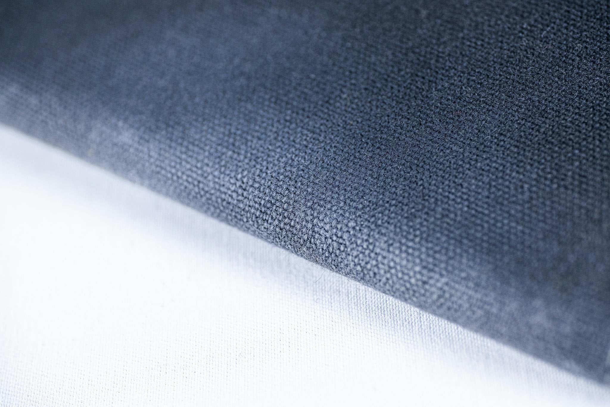 蝋引き帆布とは、綿で織られた丈夫な帆布にろうそくの「蝋」成分を染み込ませることで堅牢度や撥水性を持たせたもの。蝋成分の働きにより通常の帆布より硬さ、艶が出て、長く使用していくことで革の様な光沢が出てくる大変味わい深い素材です。