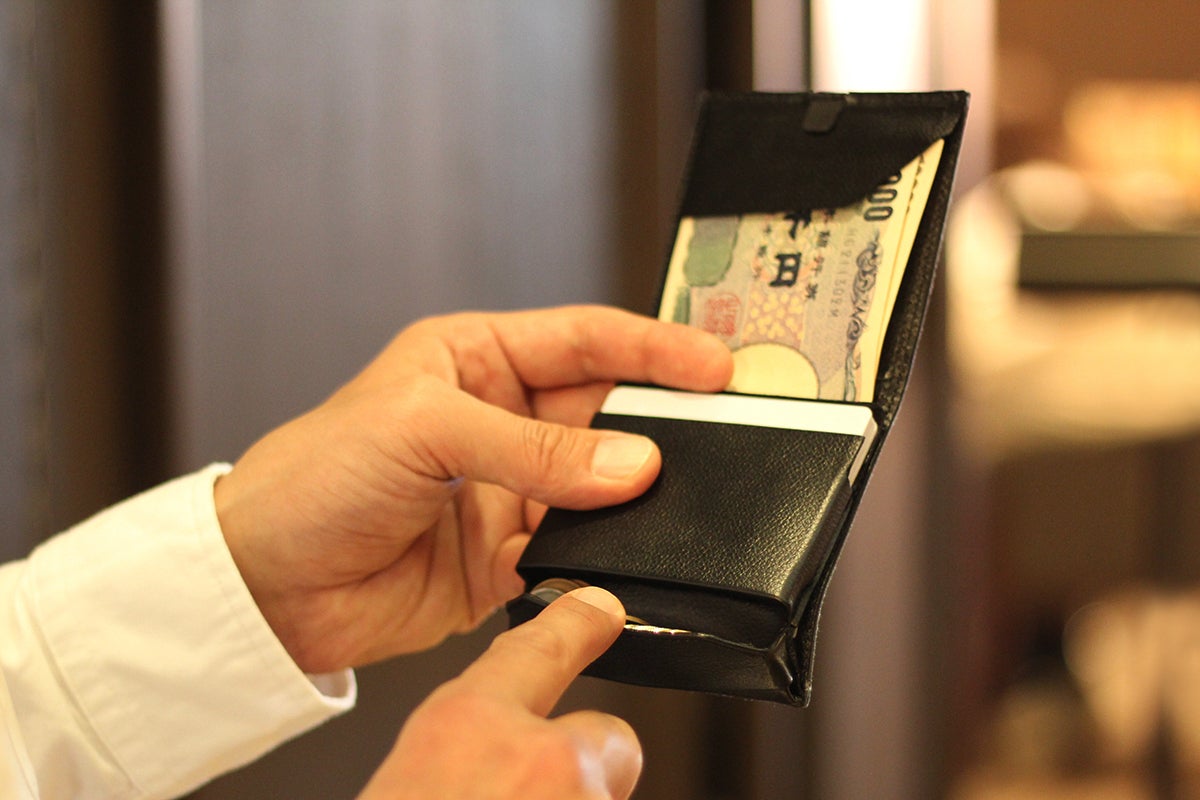 例えば、使用頻度が低い高額紙幣を紙幣入れの一番下に置いておき、フラップで留めておきます。そして、使用頻度が高い1000円札をフラップの上に置くことで、支払い時に素早く紙幣を取り出せるようになります。