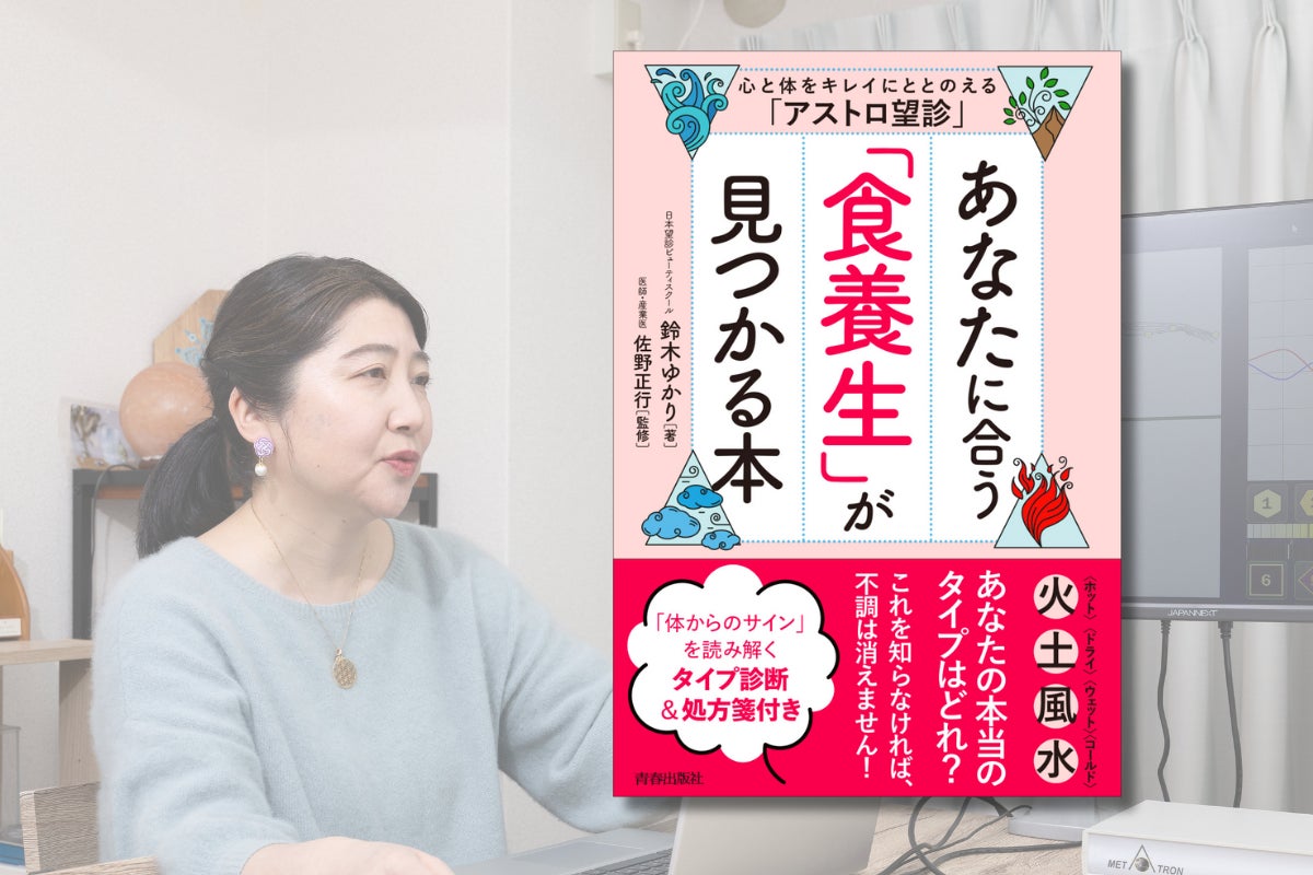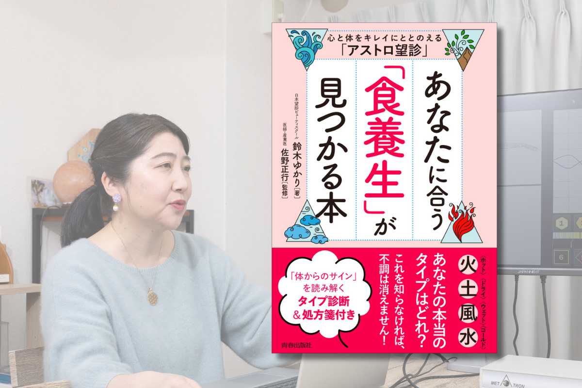 書籍の題名は、『あなたに合う食養生が見つかる本 〜心と体をキレイにととのえるアストロ望診〜』