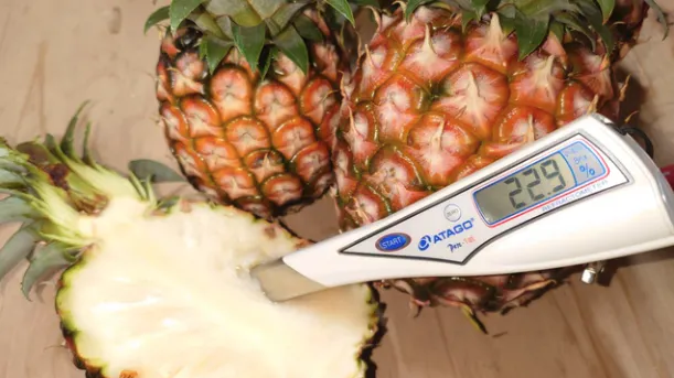 糖度はもちろんですが、酸味もしっかりあるパイナップルで、一般的に馴染みのある味に近い品種です。