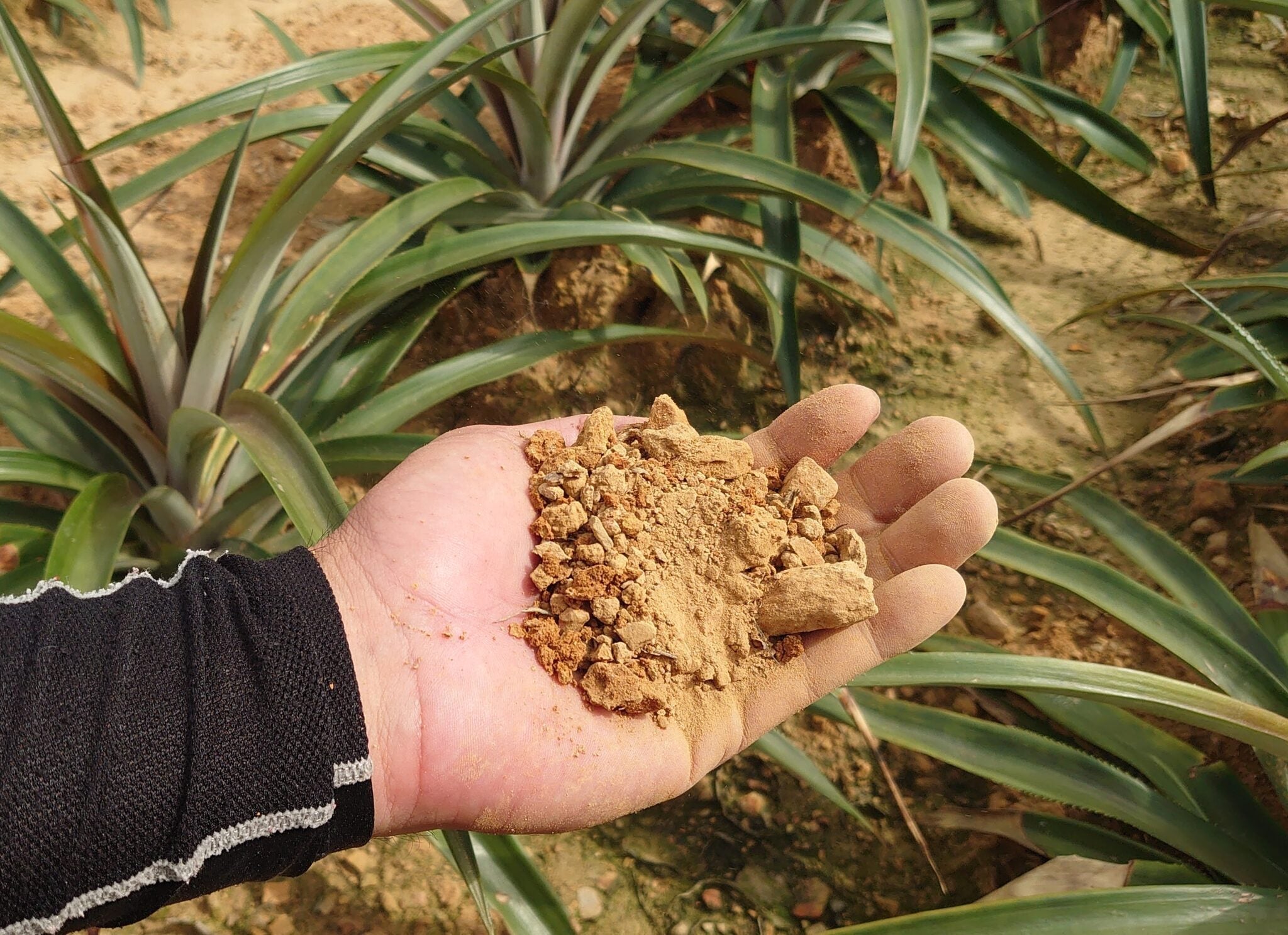 この土でないとパイナップルはうまく育ちません。