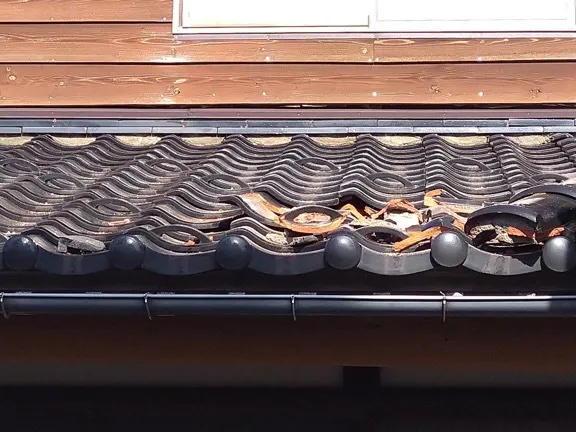 瓦屋根も6割損傷して現在もビニールシートが貼られたままです。