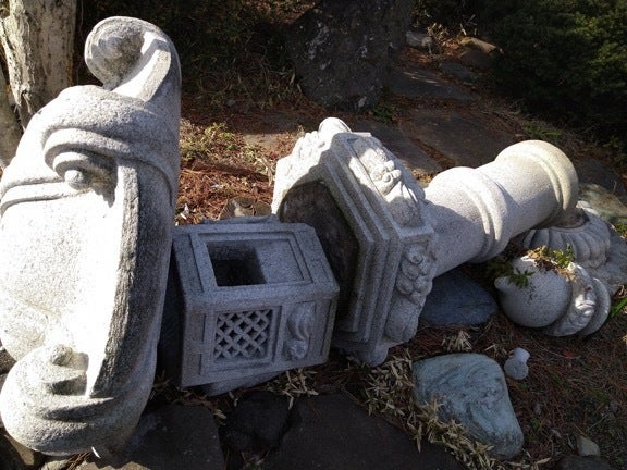 母は翌日から元通りの日々に戻りましたが、現在も私の実家の庭の石灯籠二基は依然倒れたまま。