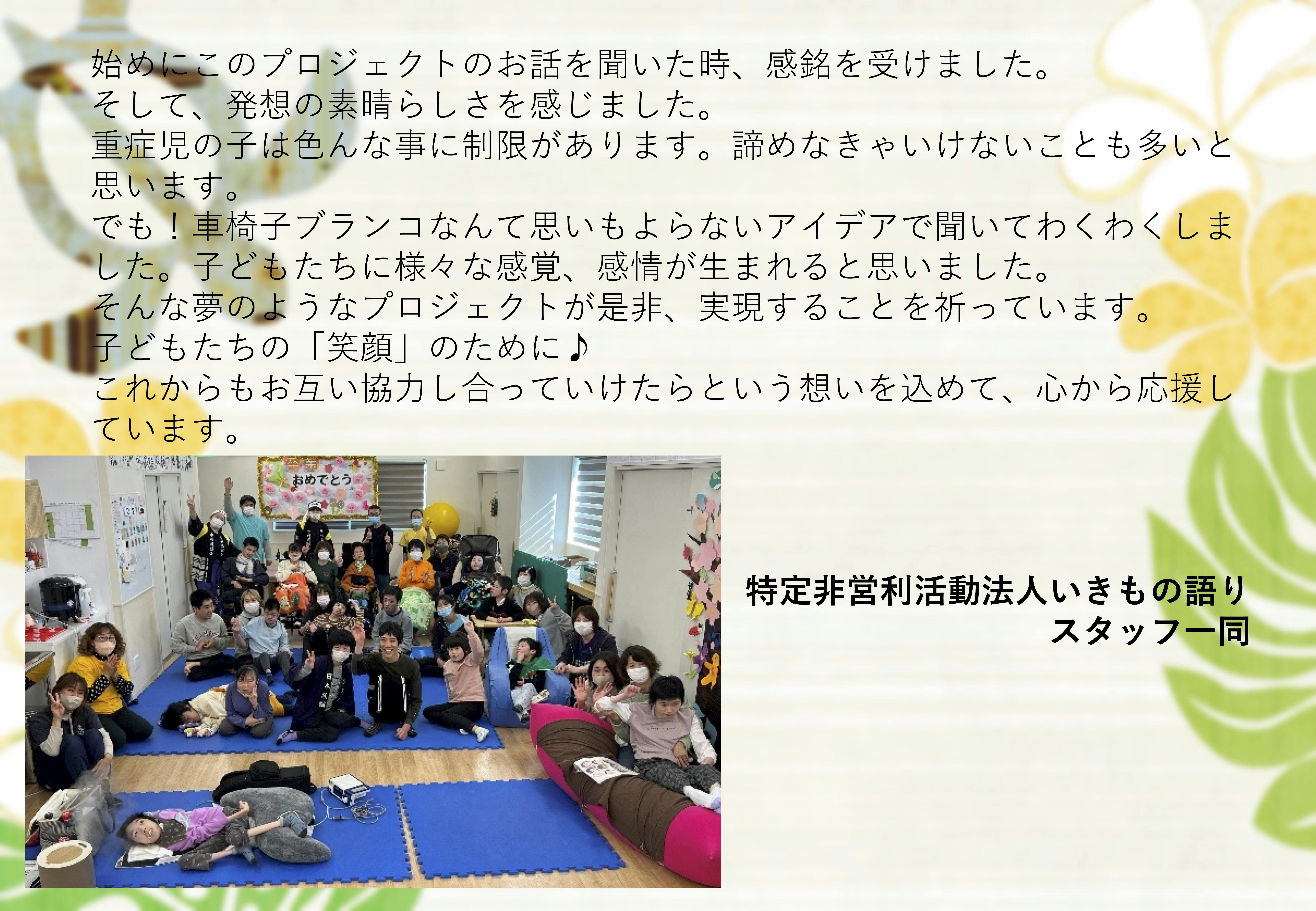 誰もが幾つになっても楽しめるブランコの実現に向けて、ご協力の程、よろしくお願いいたします!!