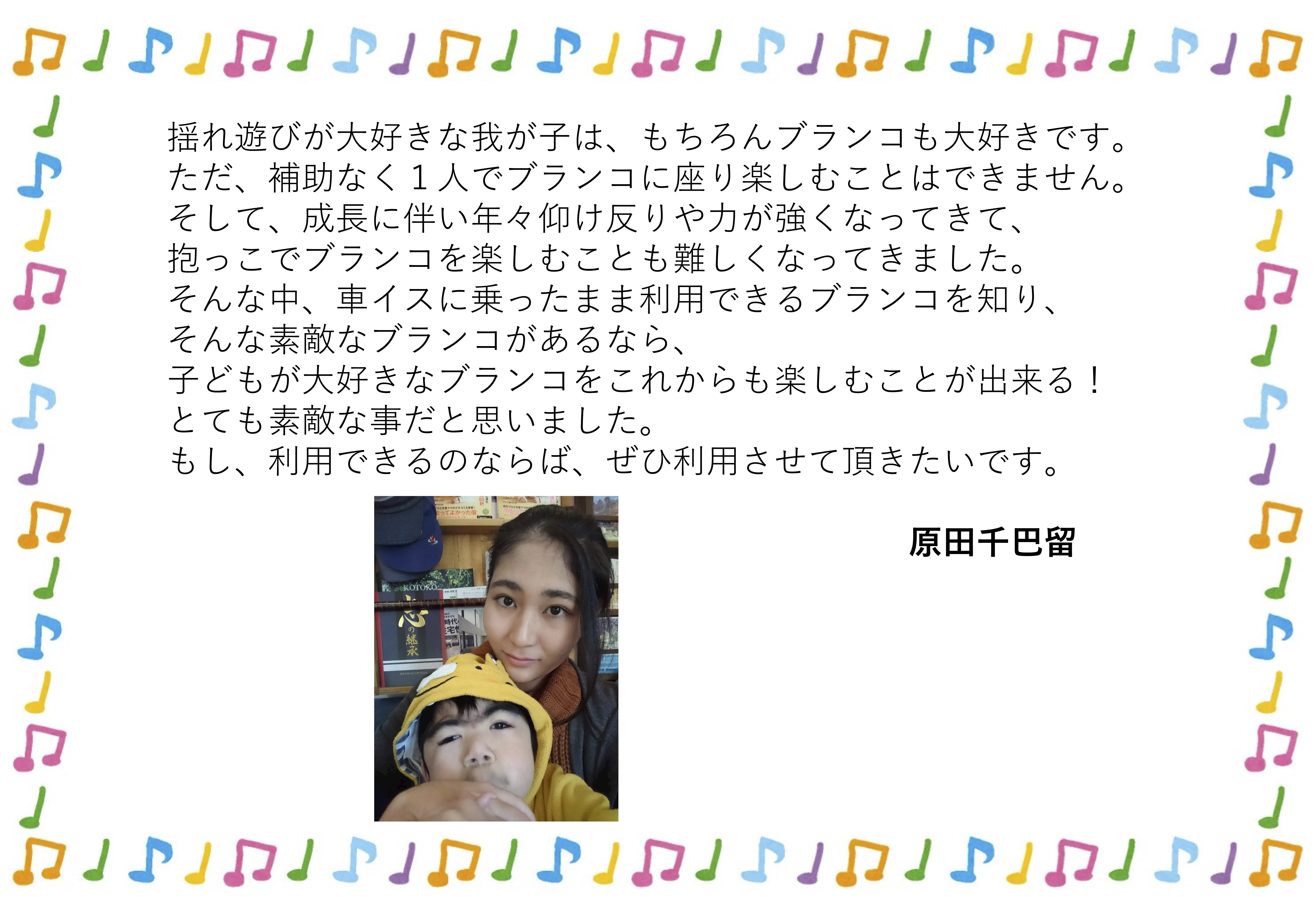 はじめまして。車椅子ブランコプロジェクト実行委員会の原田です。