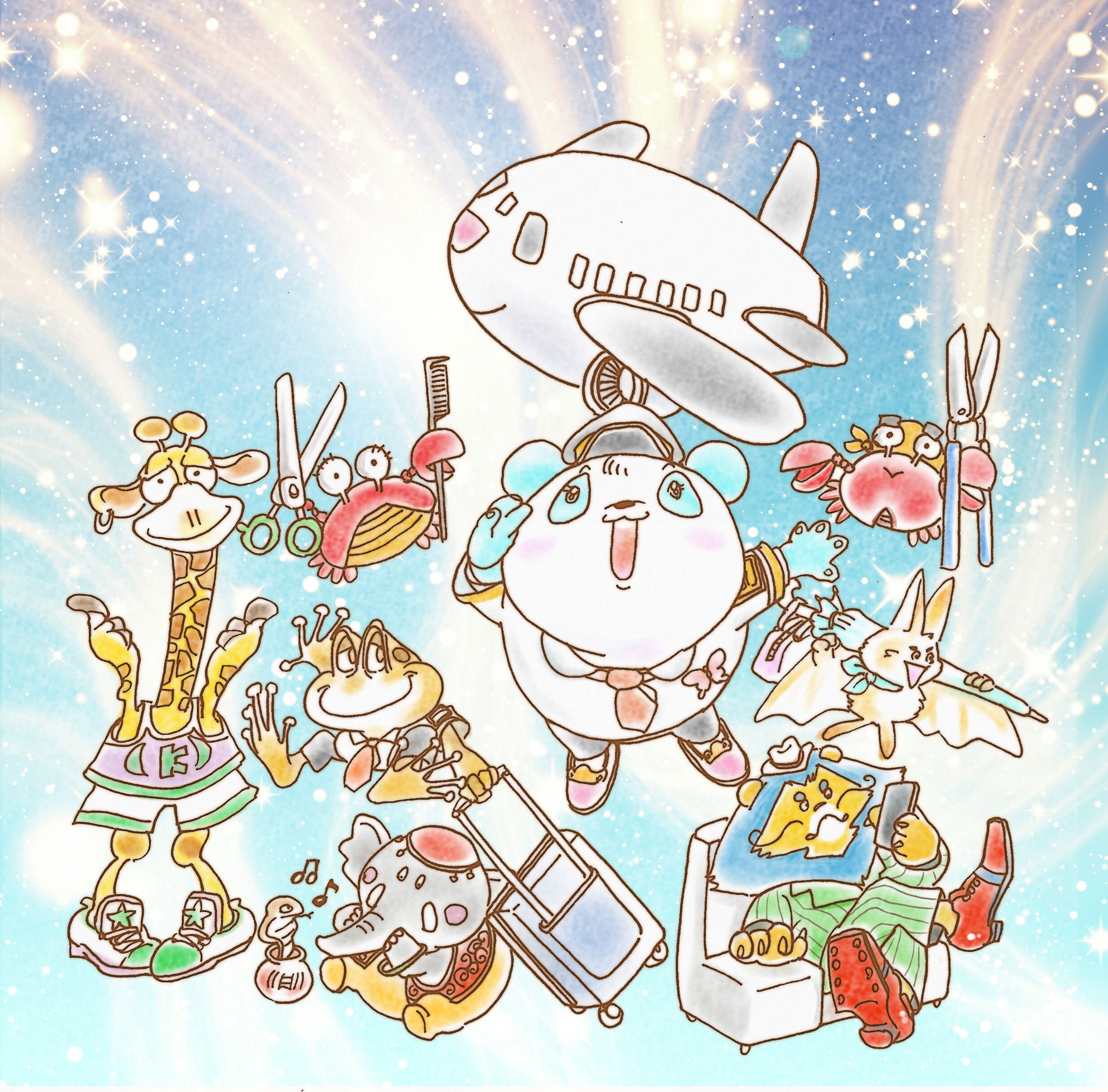 どんな動物も快適に空の旅ができる「どうぶつ航空」、パイロットのパンダの「きちょうさん」とおきゃくさま係の「ガマガエルくん」は今日もたくさんの動物たちを空港にお迎えです。