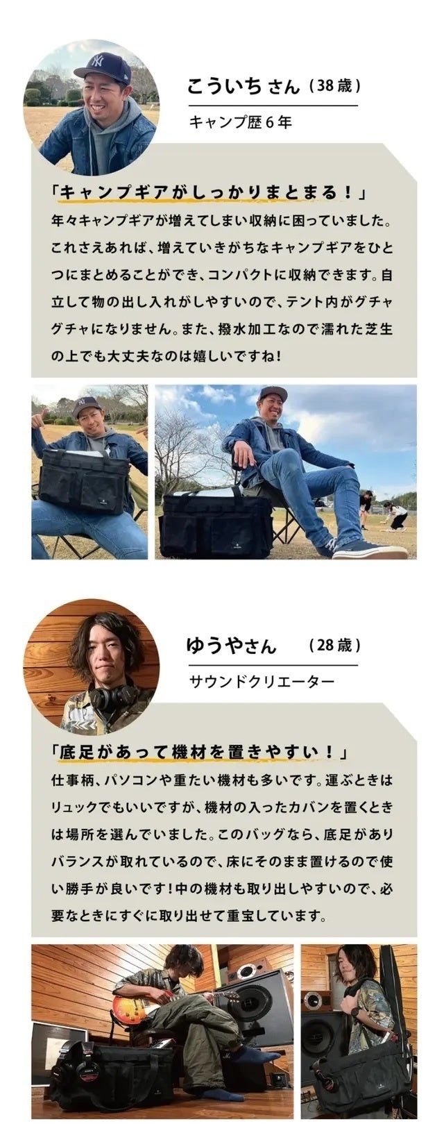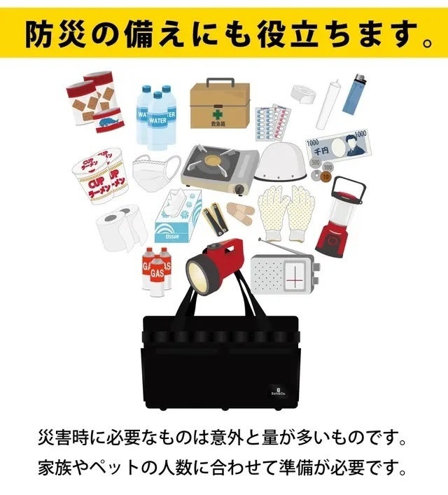 A:アウトドア、ピクニック、買い物、フィットネスジム、工具入れ、キャンプギア収納、マザーズバッグ、非常時の防災バッグ、釣り、レコード入れ、お子様のおもちゃ入れなど多様な使い道がございます。