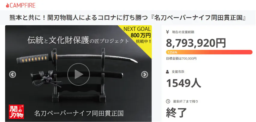 ニッケン刃物は、過去にもCAMPFIREを通じて、複数の商品化プロジェクトを実施してきました。初挑戦の日本刀型ペーパーナイフのプロジェクトでは、想像以上の反響があり、刀鍛冶の町である関の刃物を新しいカタチで広くPRする事ができたため、今回も需要調査を含め、立ち上げる事としました。