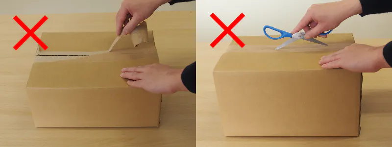 一般的にガムテープは手で剥がしにくく、途中で剥がれてイライラしたり、また、ハサミを広げた状態でダンボール開梱を試みると指が危険な状態になるという、モヤモヤ(不満)を抱えている人も多いと思われます。