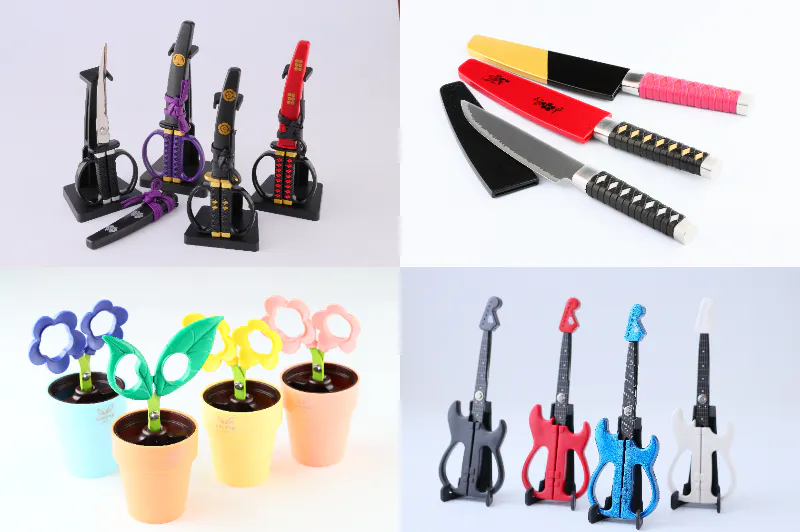 ニッケン刃物は、刃物の町岐阜県関市で創業して75年以上、キッチンハサミや事務用ハサミ、工具ハサミと言った一般的なハサミを製造する一方で、近年は日本刀型ハサミ、ギター型ハサミなど、デザイン性のある商品を産み出しております。